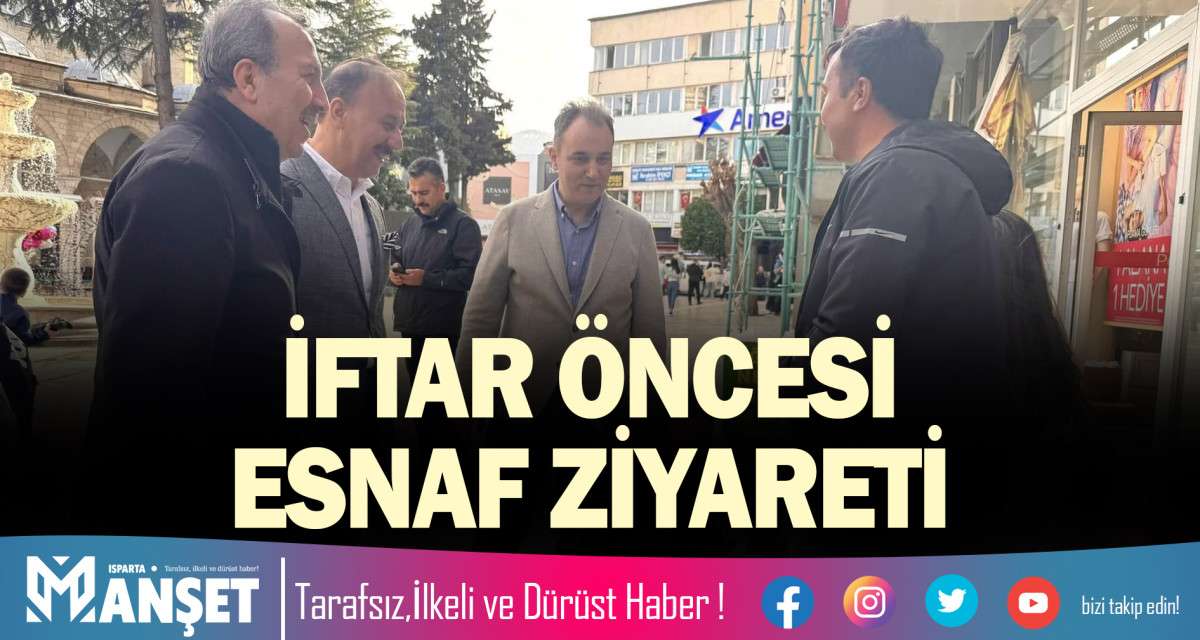 Isparta Valisi Abdullar Erin, Milletvekili Mehmet Uğur Gökgöz ve İl Emniyet Müdürü Erdem Bildirici, iftar öncesi kent merkezinde esnaf ziyaretinde bulundular. Tarihi Üzüm Pazarı ve çevresinde esnafları ziyaret eden Vali Erin, Milletvekili Gökgöz ve Emniyet Müdürü Bildirici sohbet ederek, karşılıklı görüş alışverişinde bulundular.