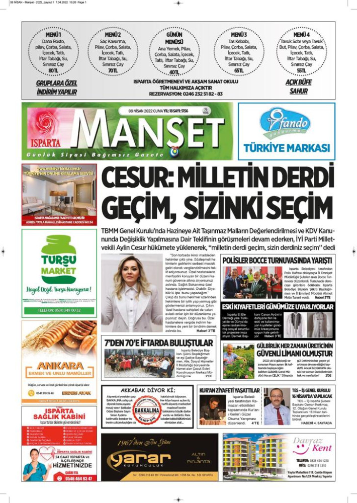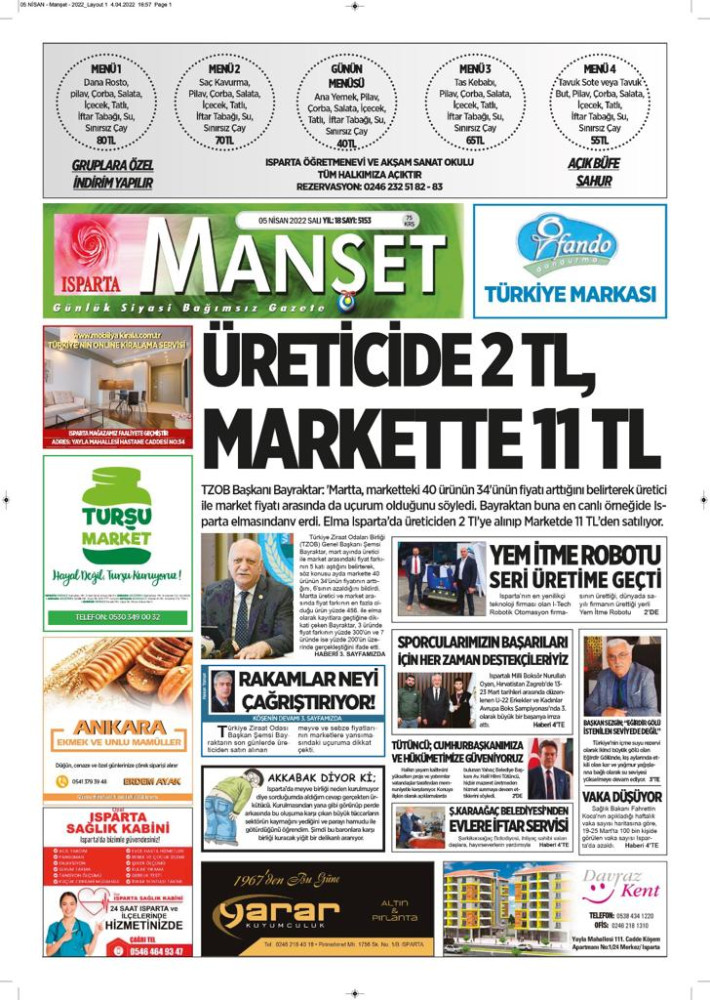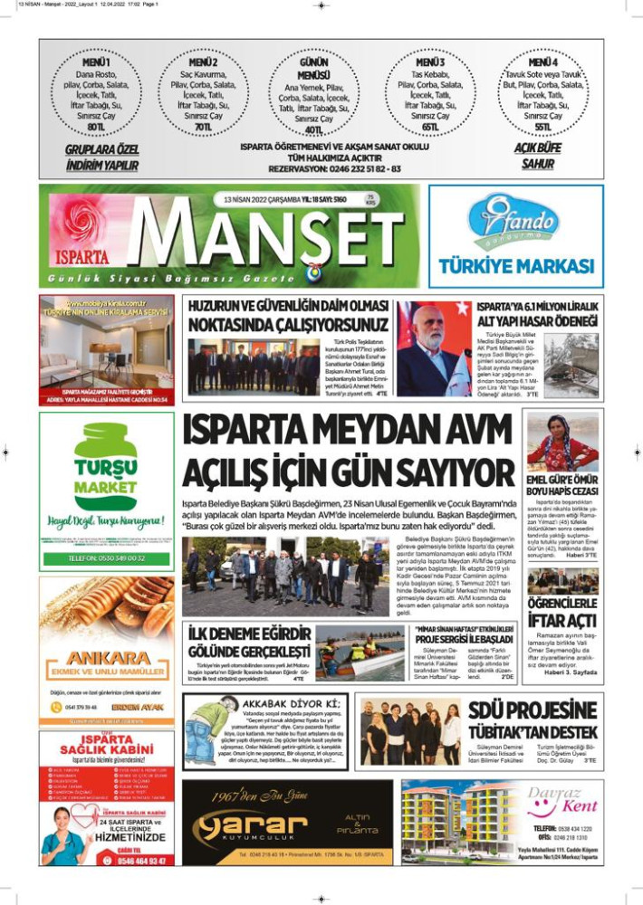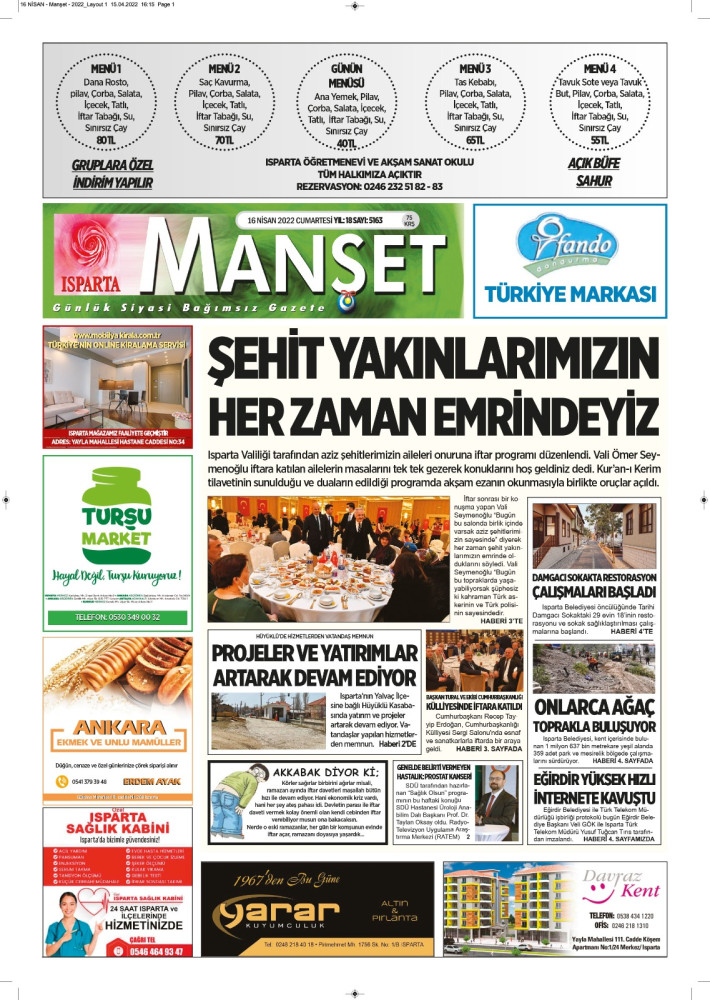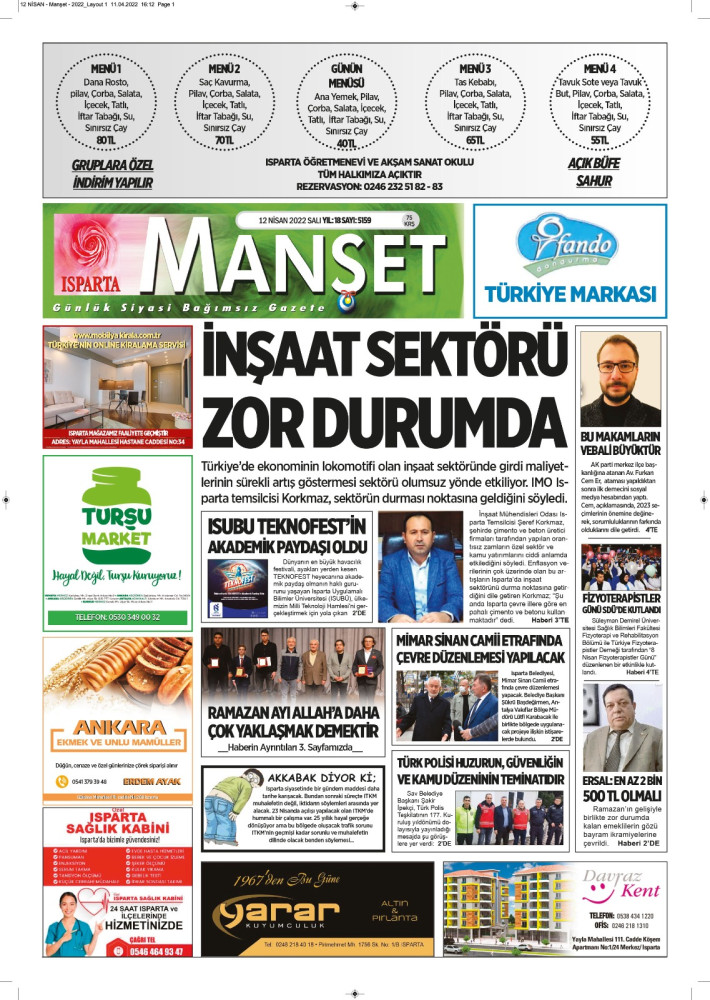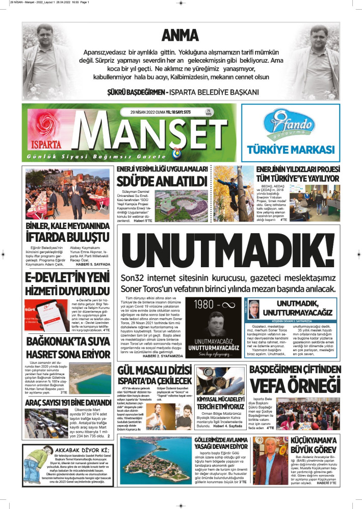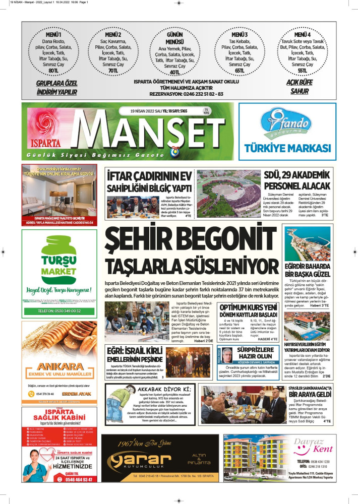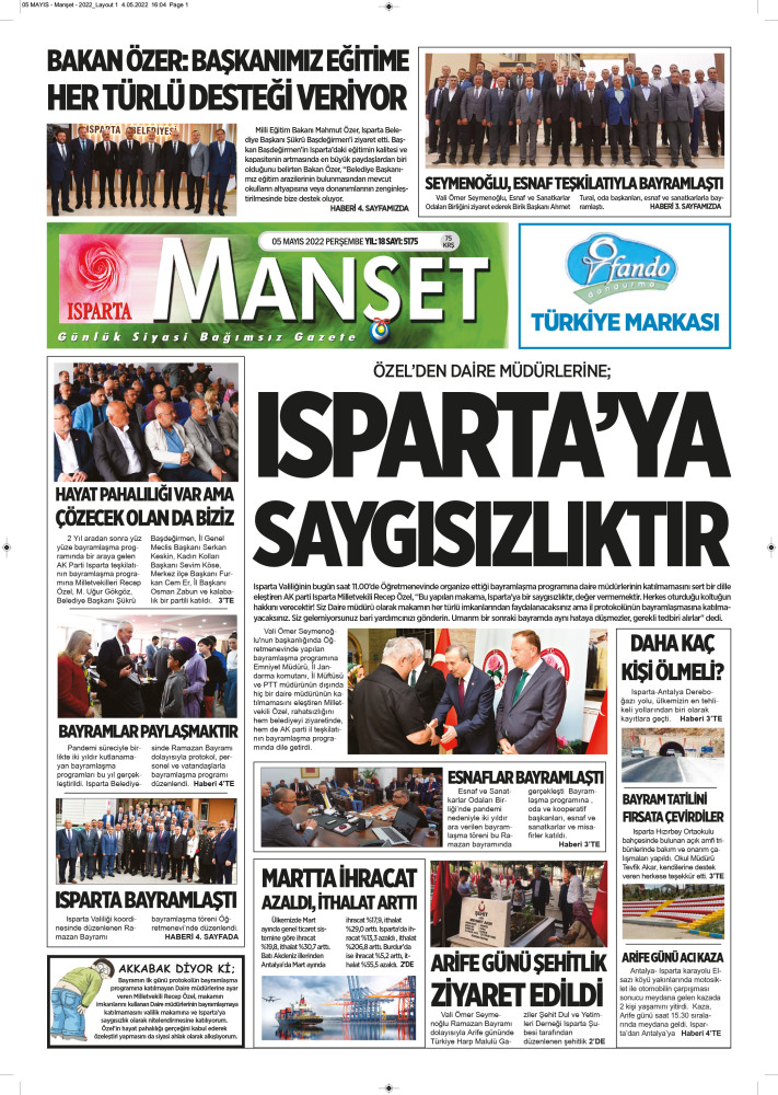 Isparta Manşet 5 Nisan 2022 Salı