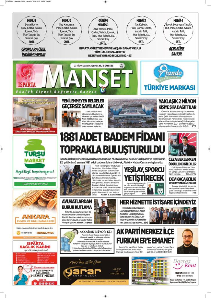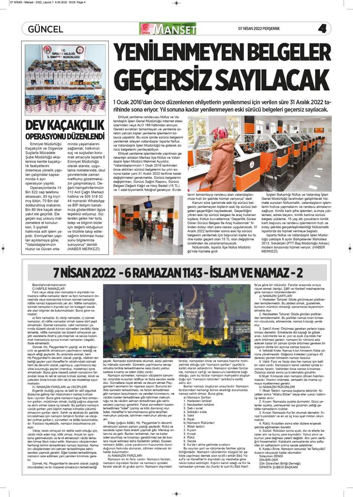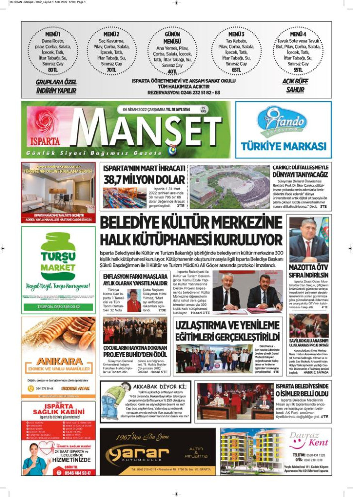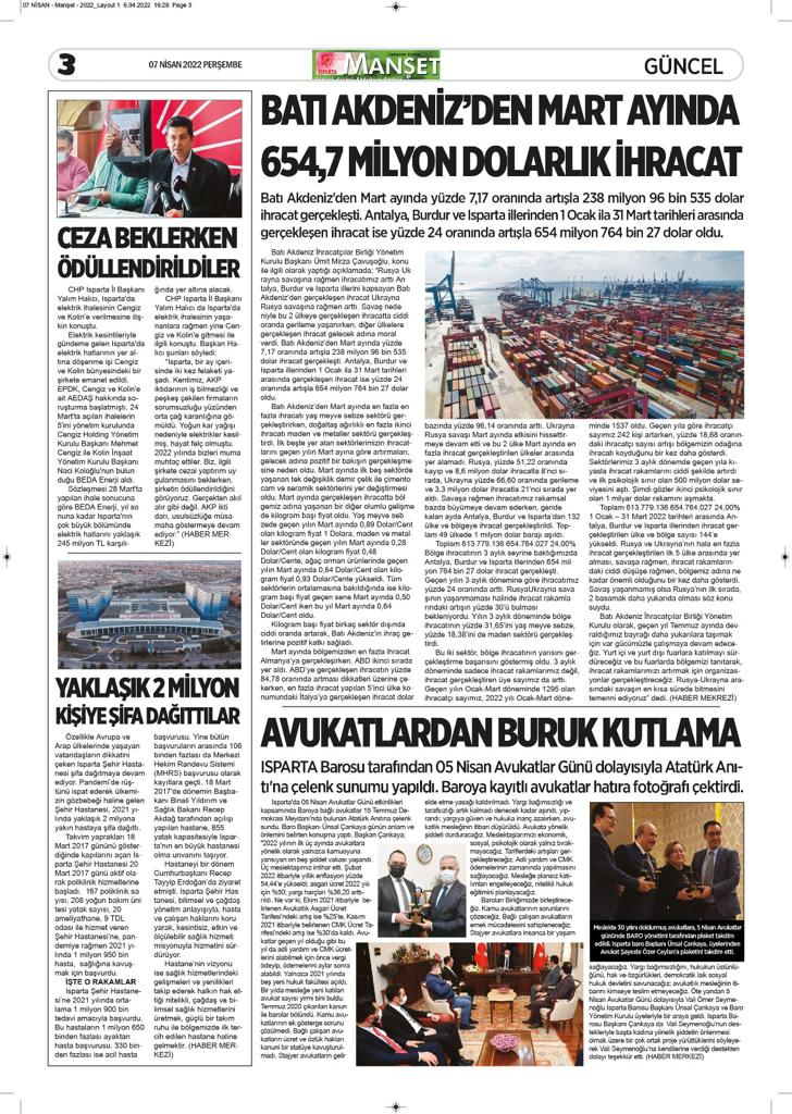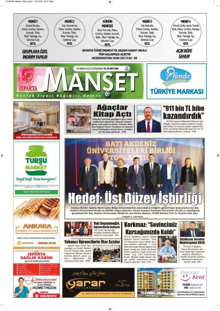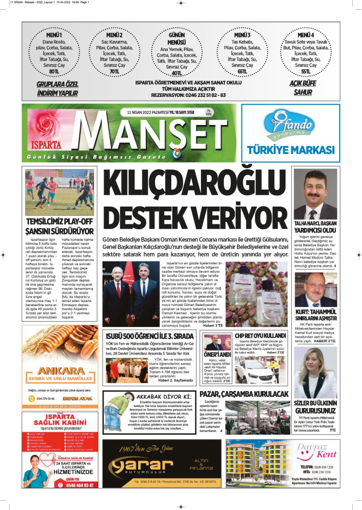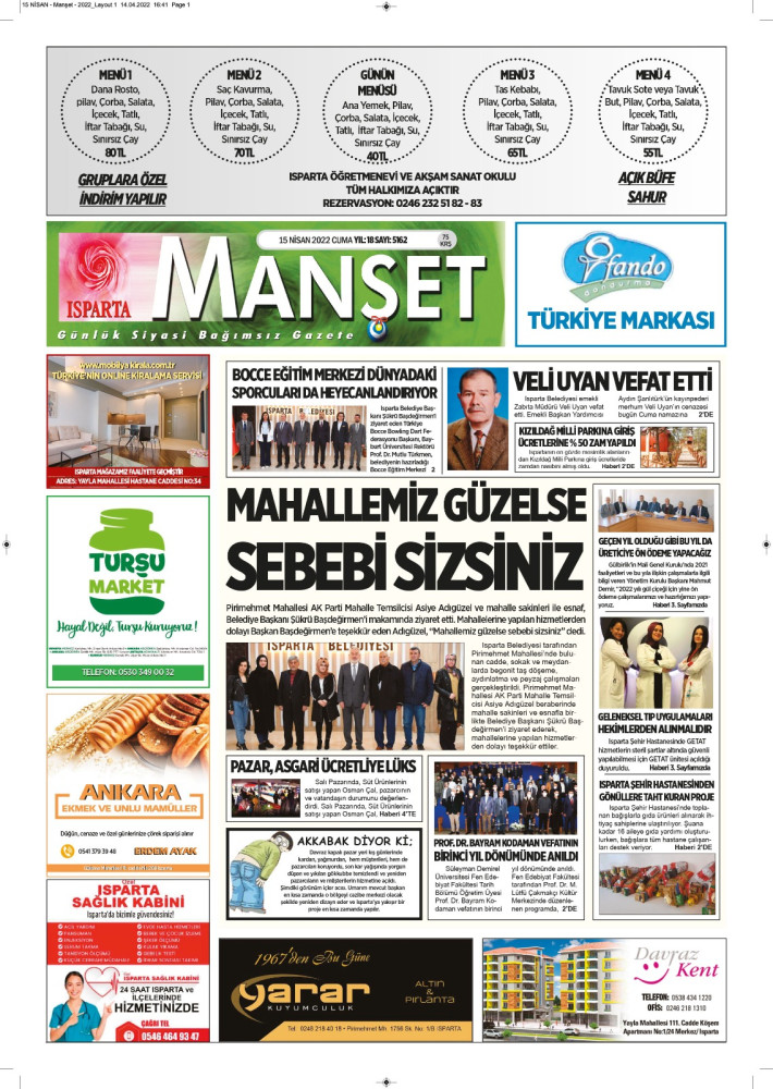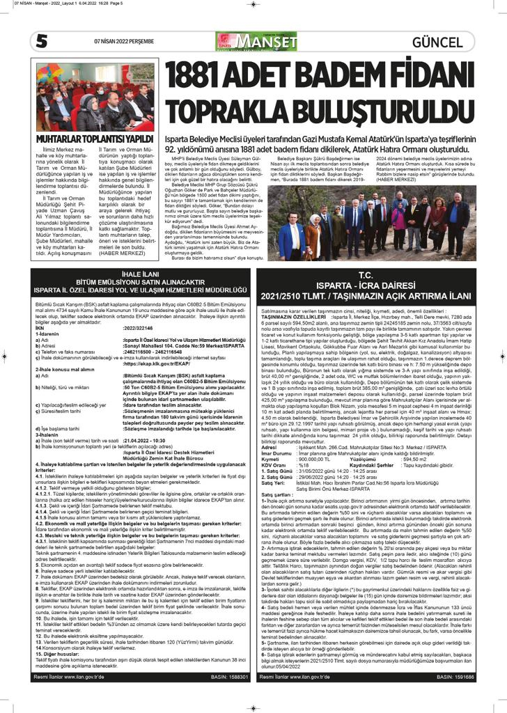 Isparta Manşet 5 Nisan 2022 Salı