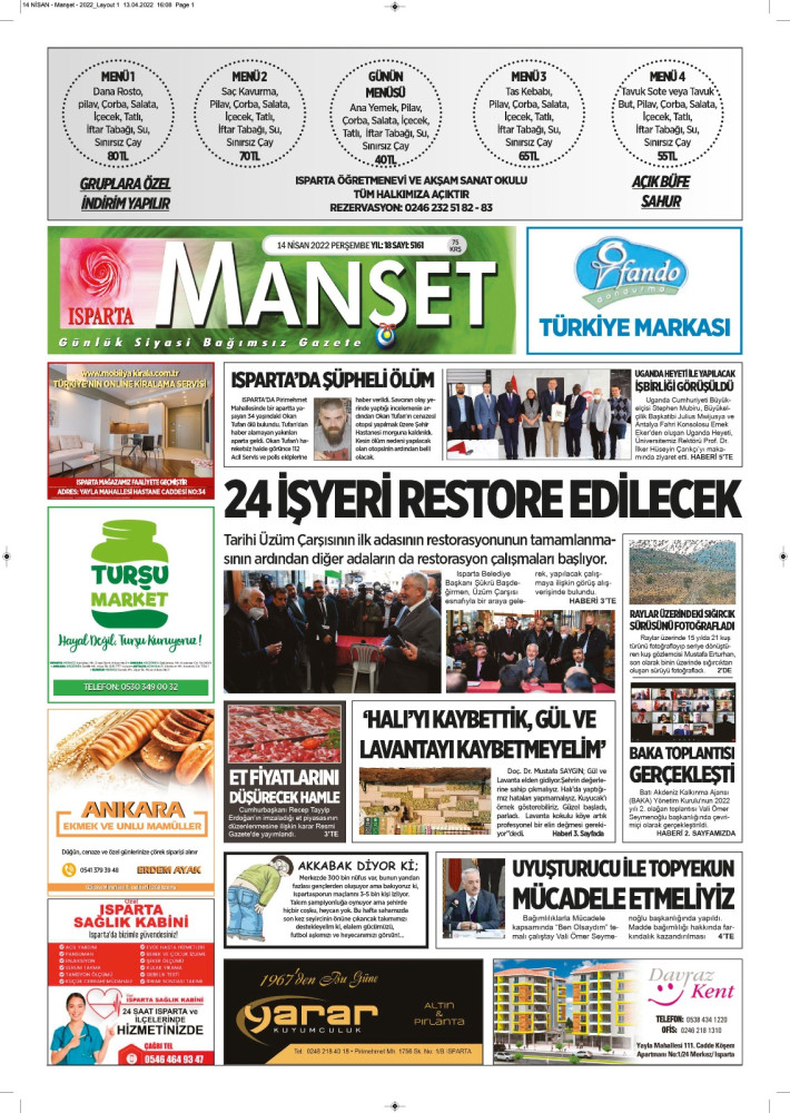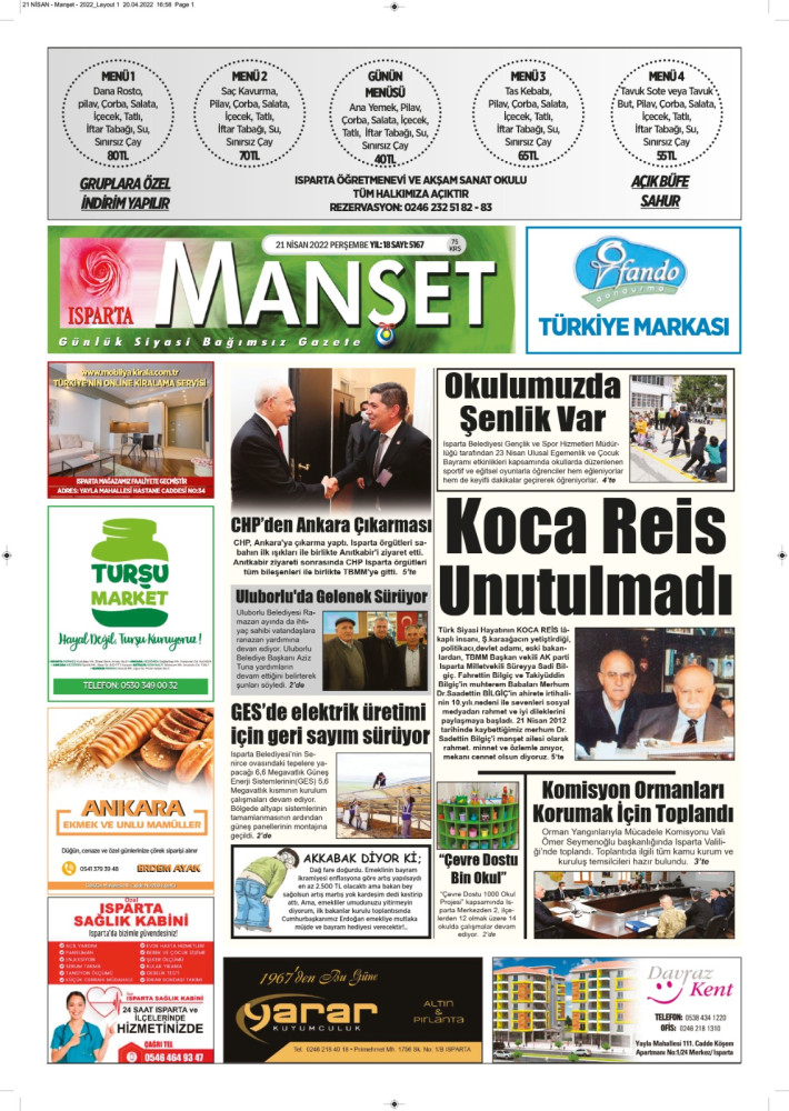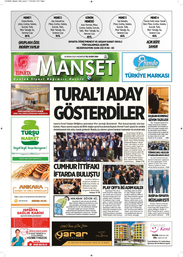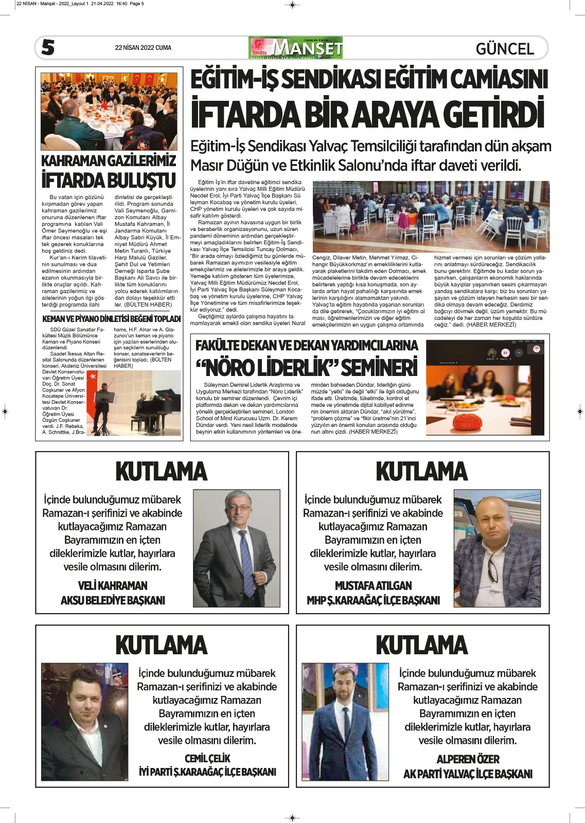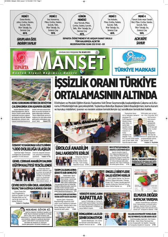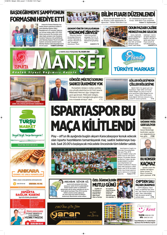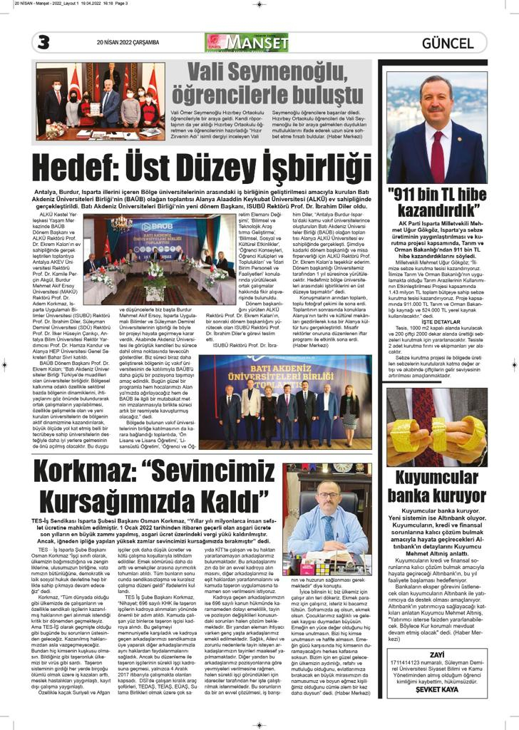 Isparta Manşet 5 Nisan 2022 Salı