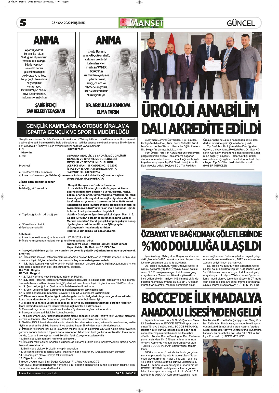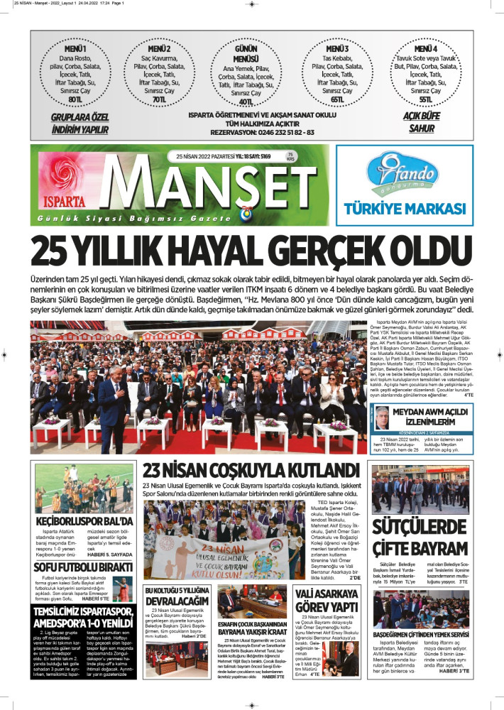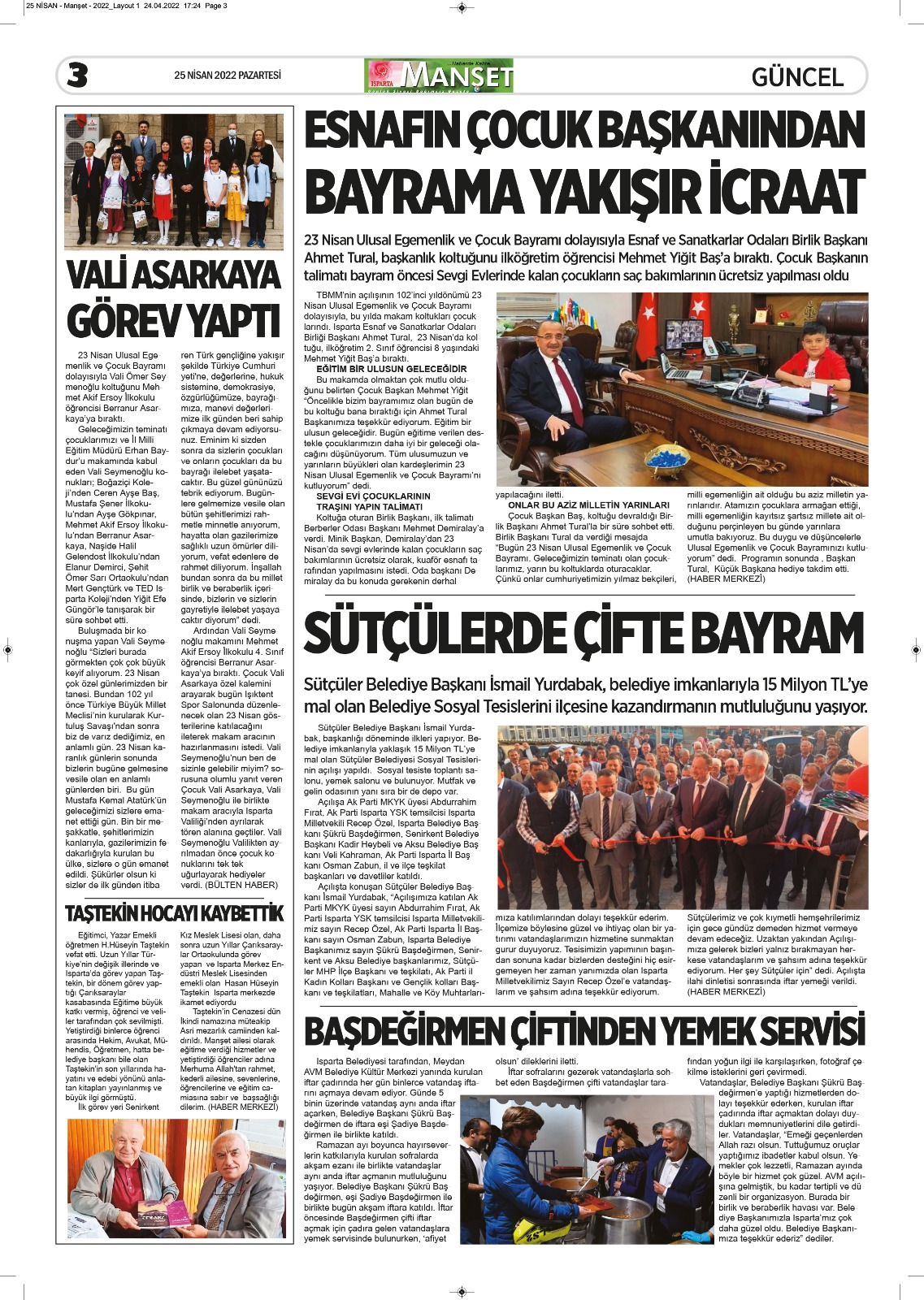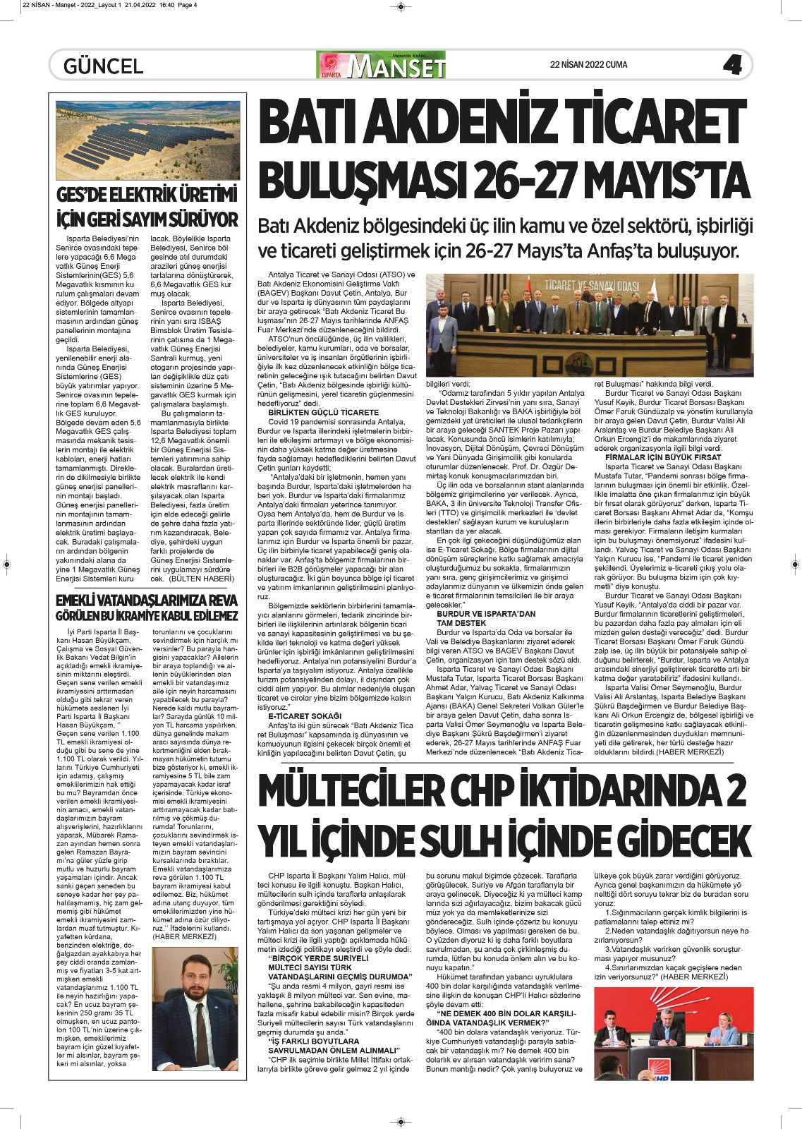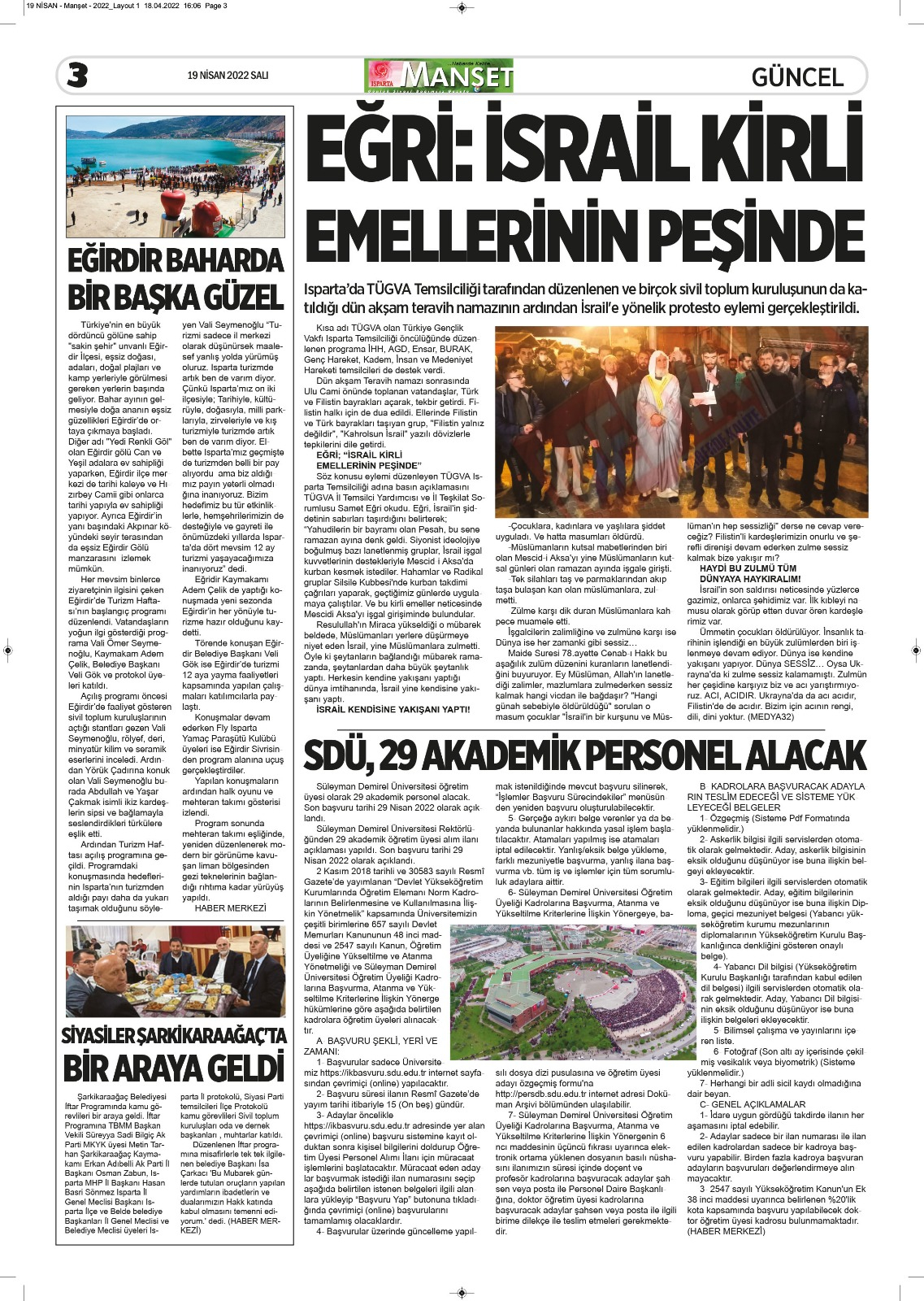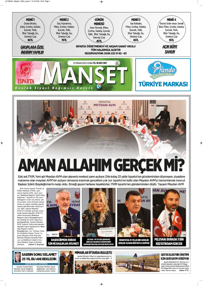 Isparta Manşet 5 Nisan 2022 Salı