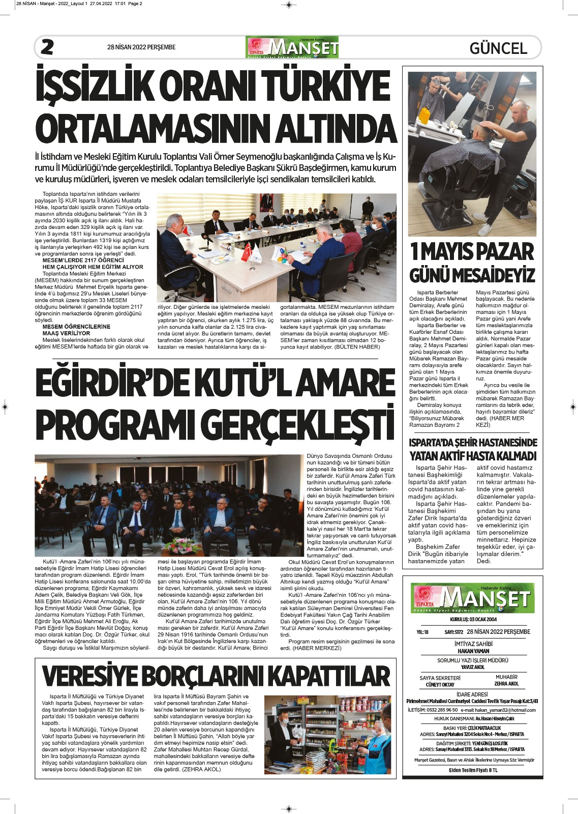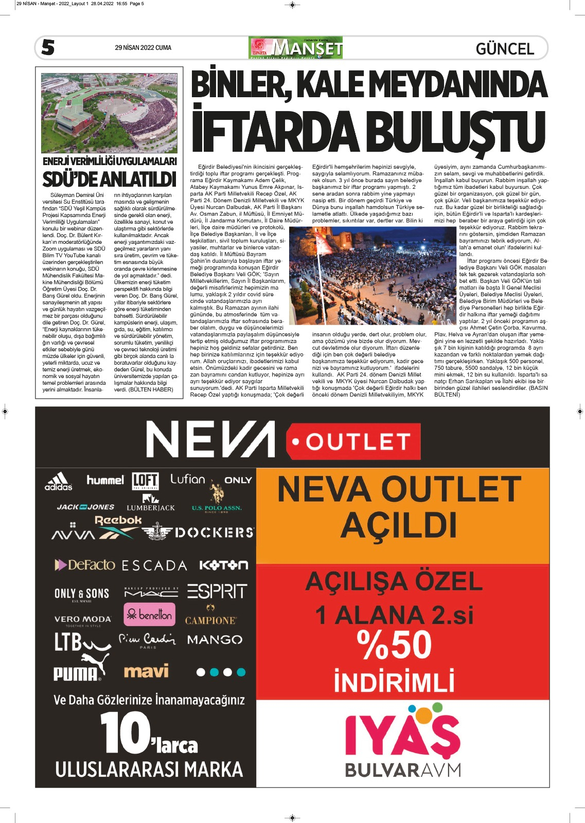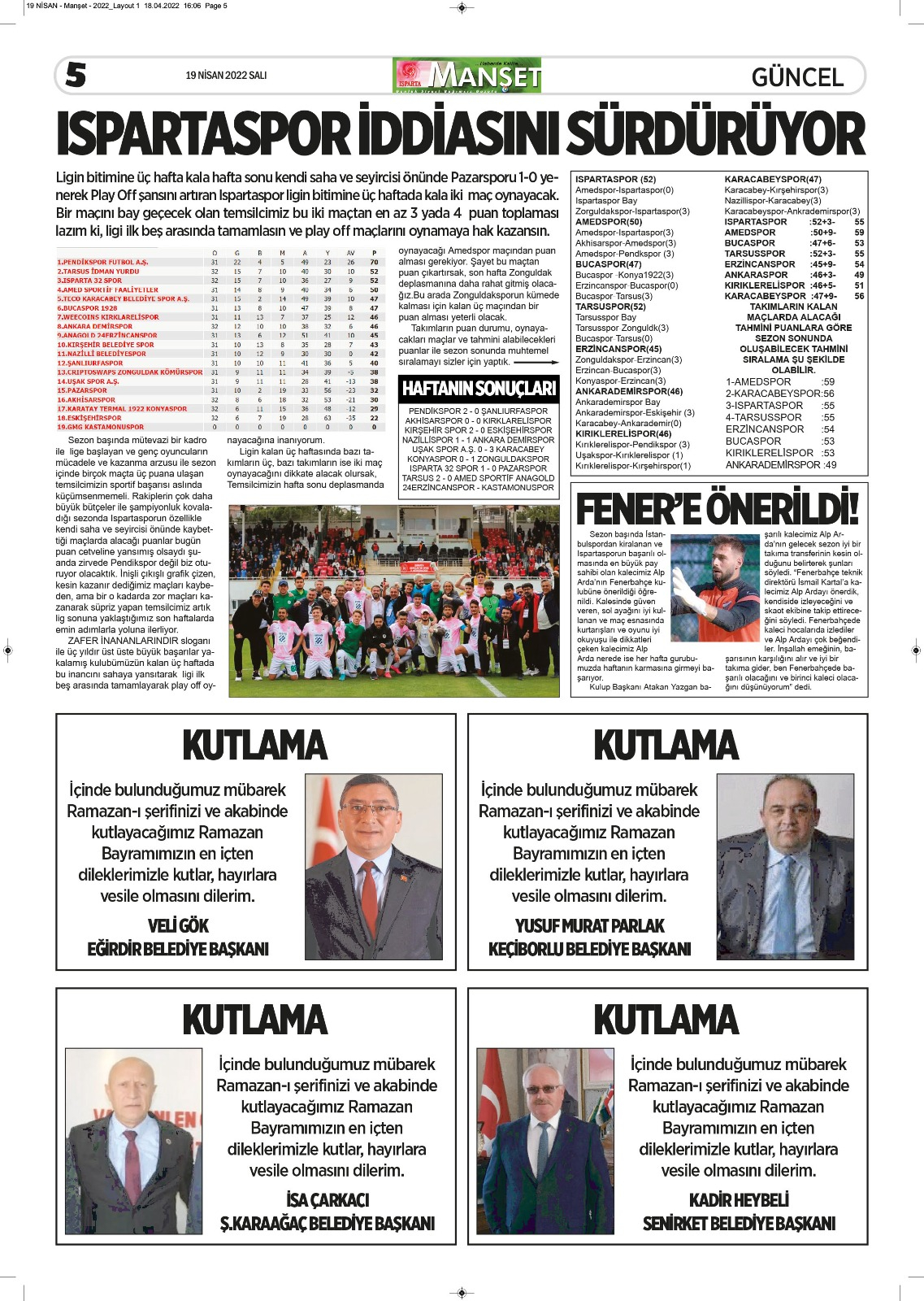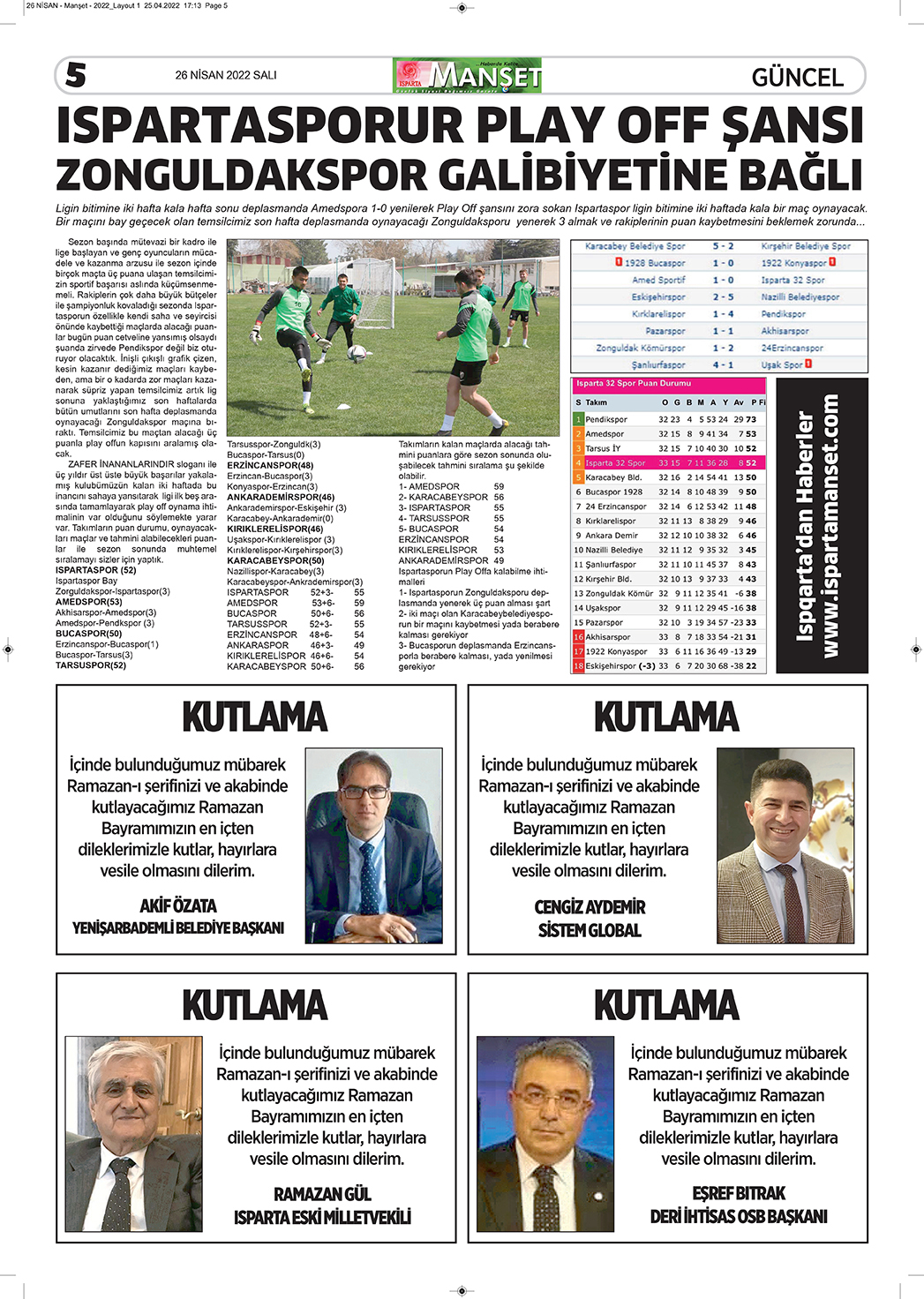 Isparta Manşet 5 Nisan 2022 Salı