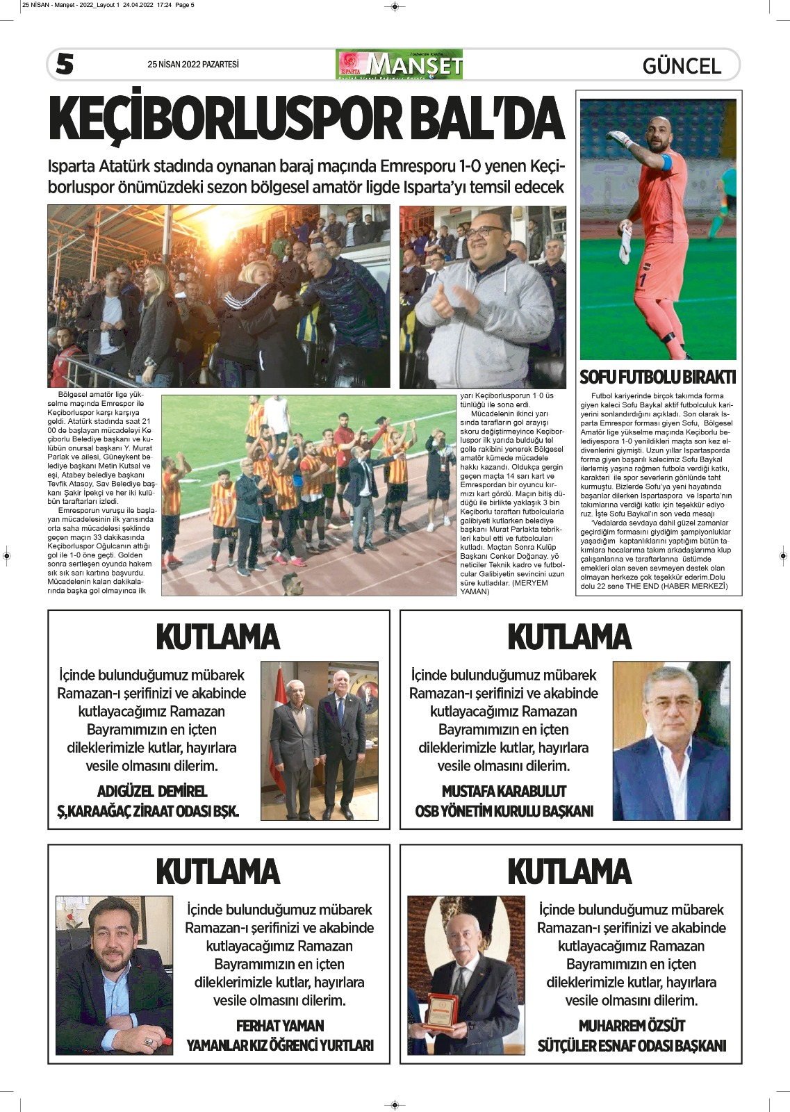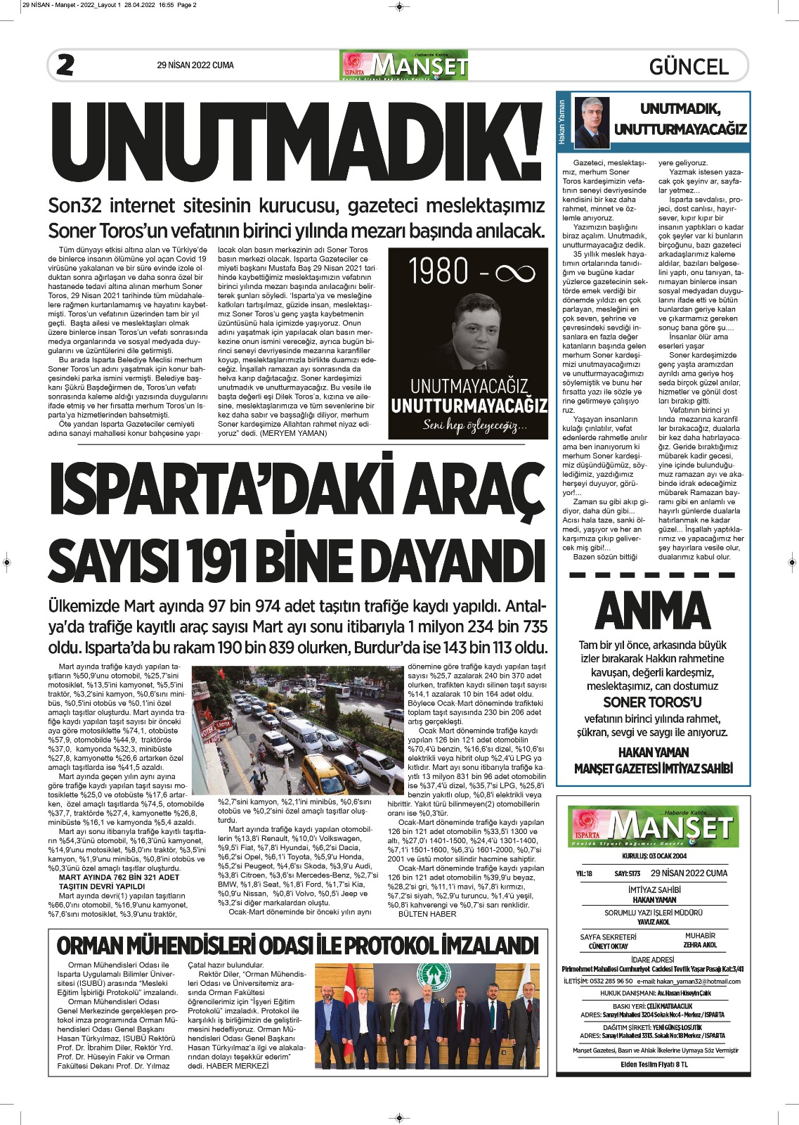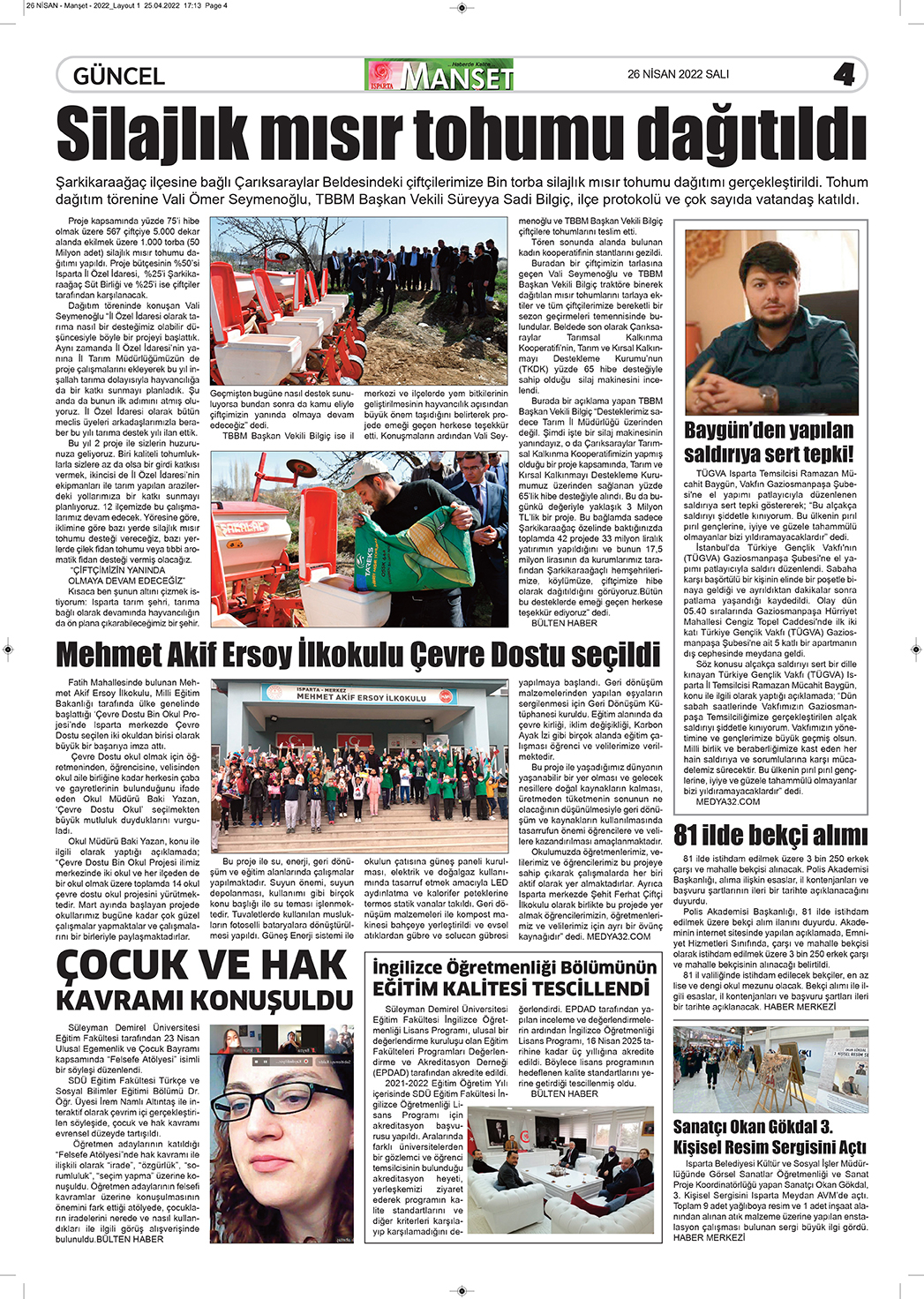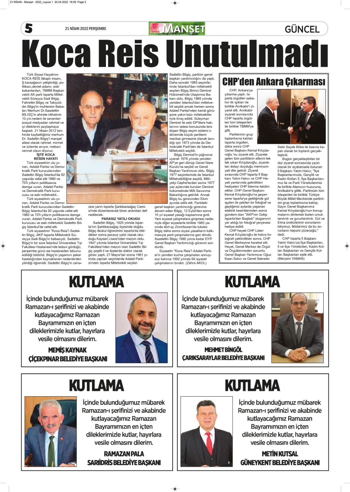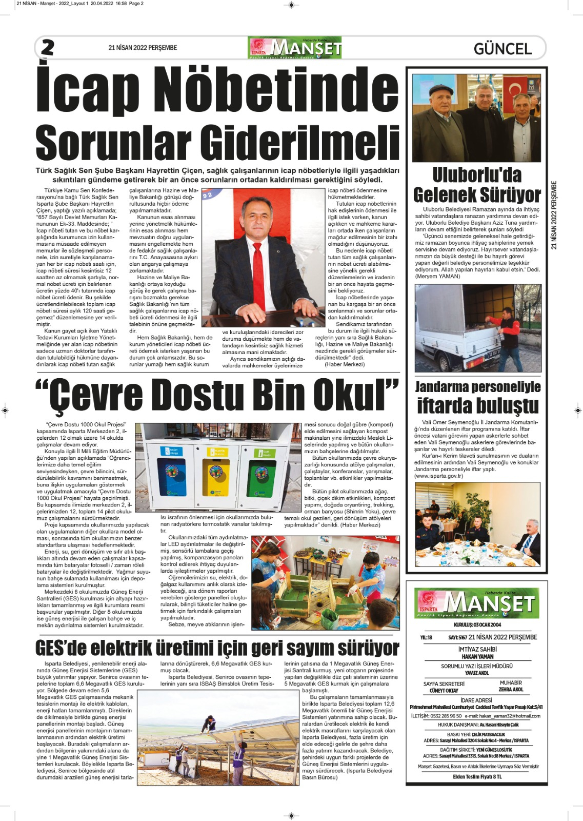 Isparta Manşet 5 Nisan 2022 Salı