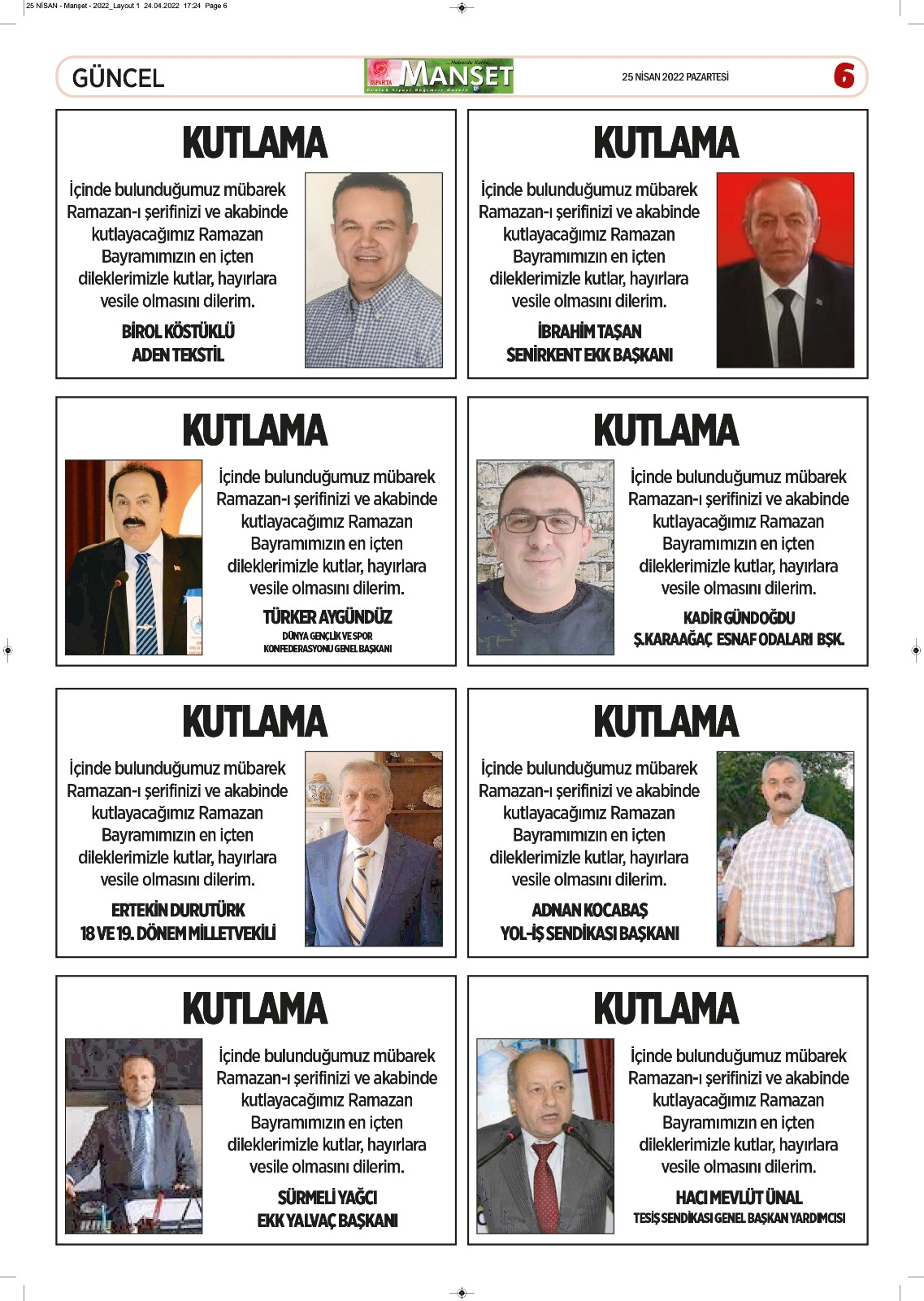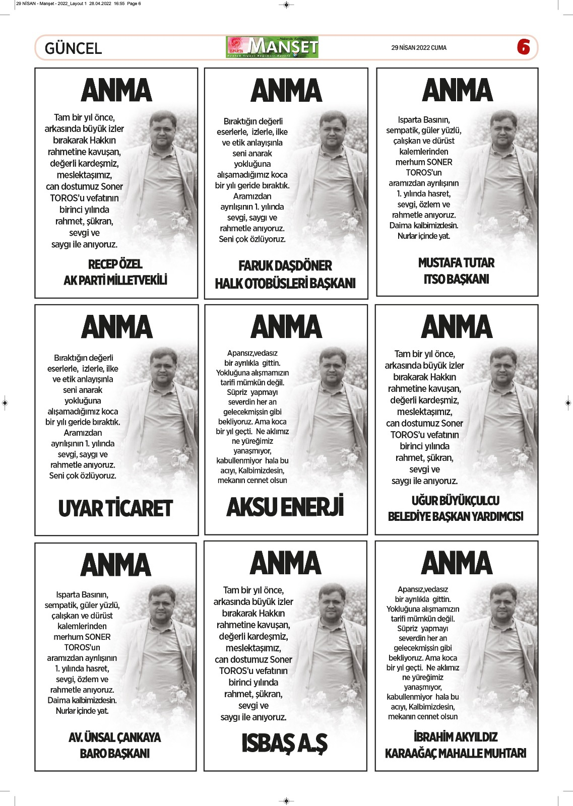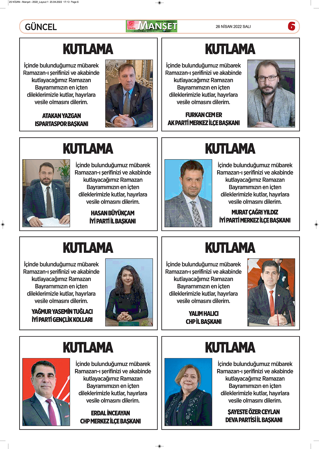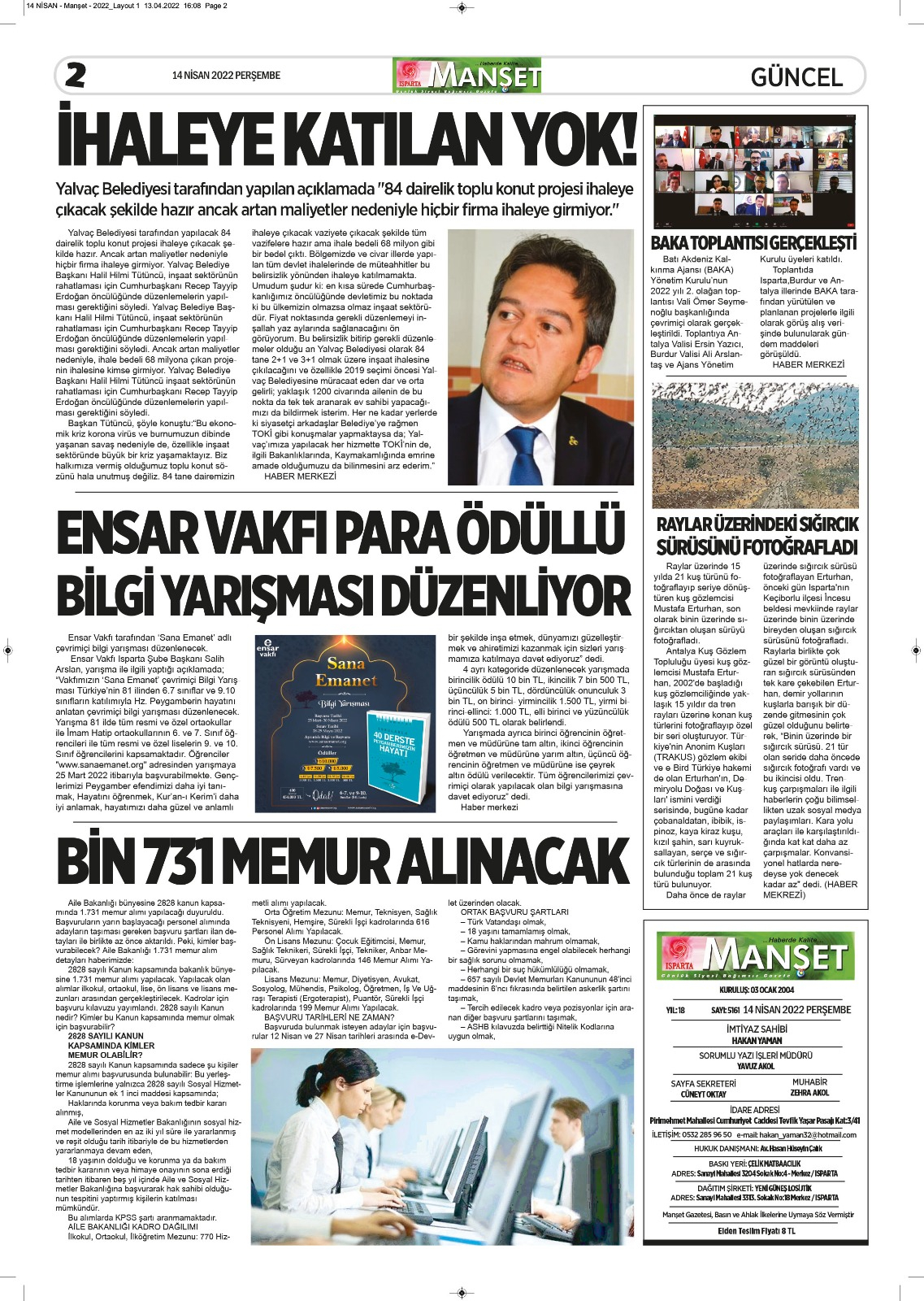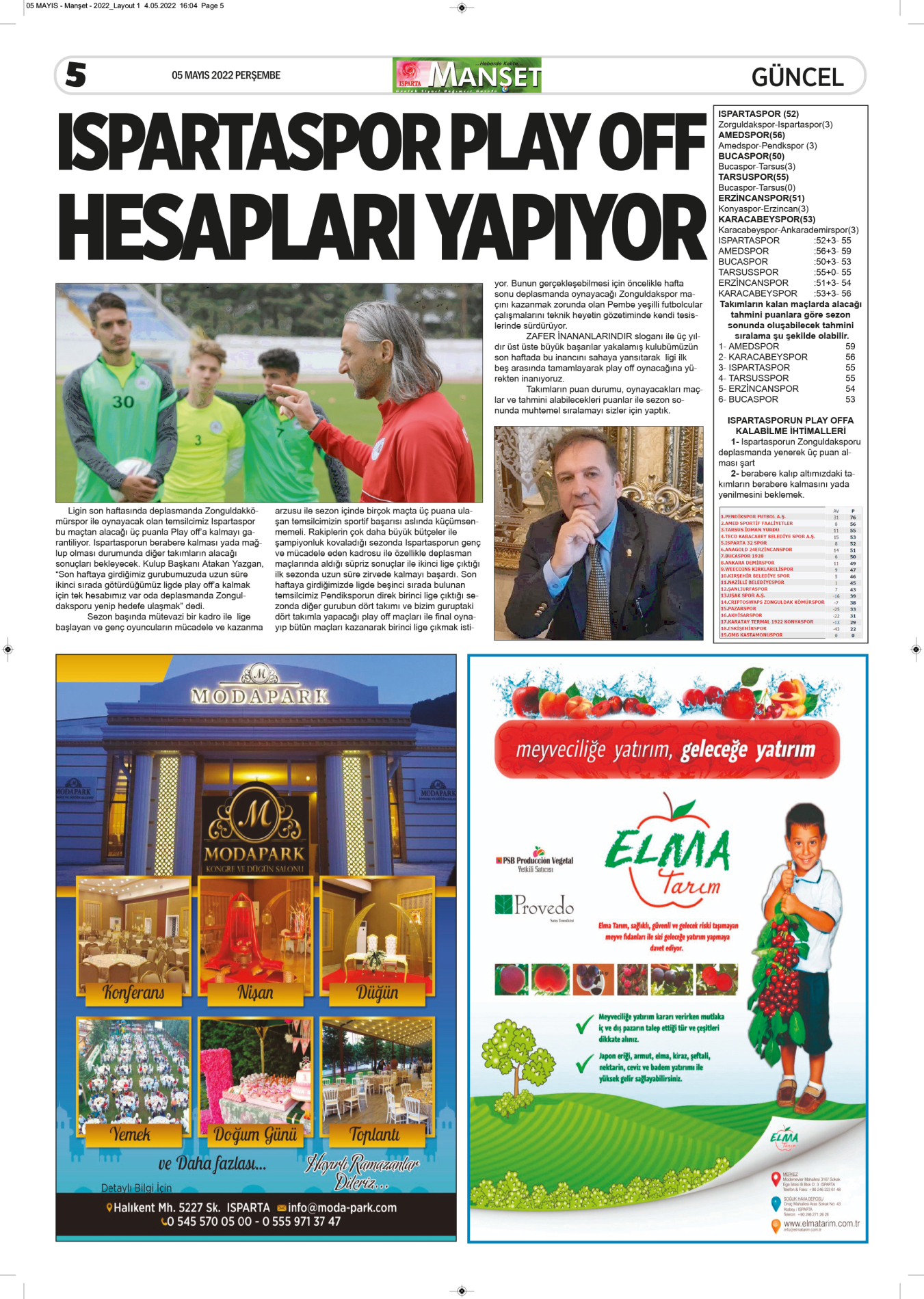 Isparta Manşet 5 Nisan 2022 Salı