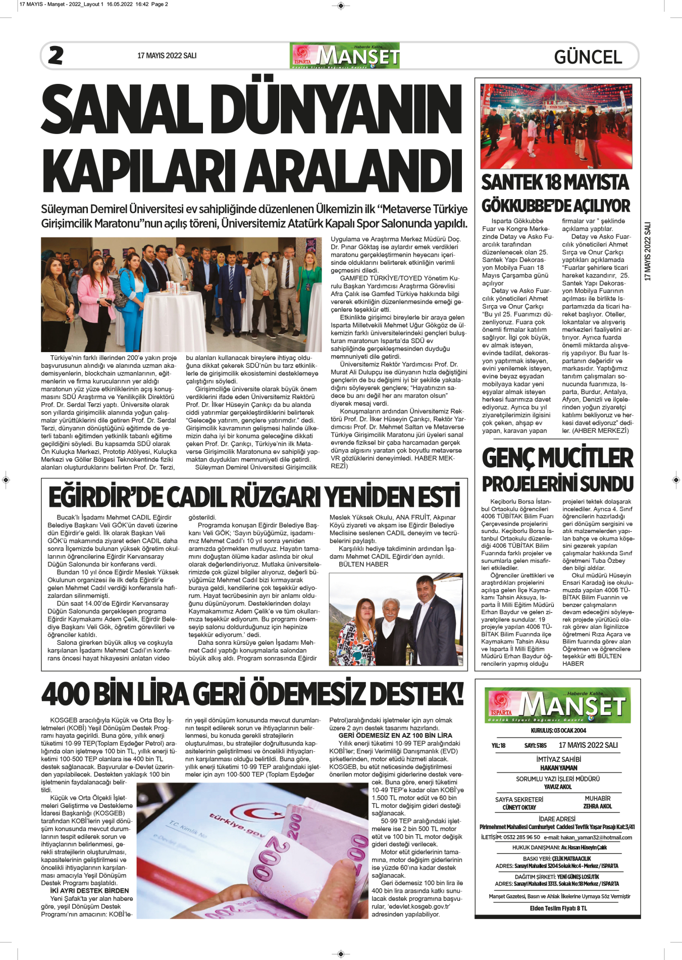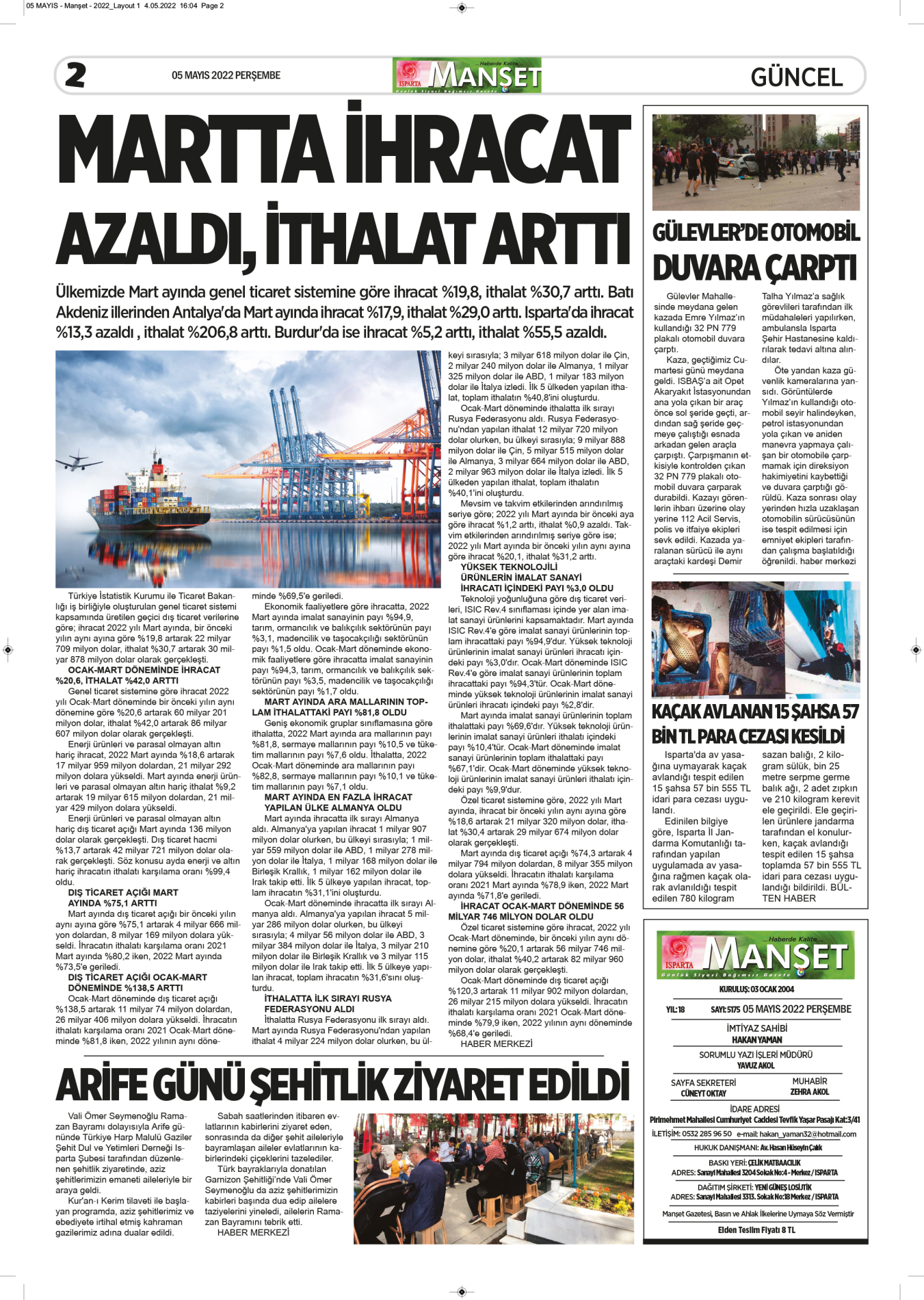 05 Mayıs 2022 Tarihli Gazetemiz