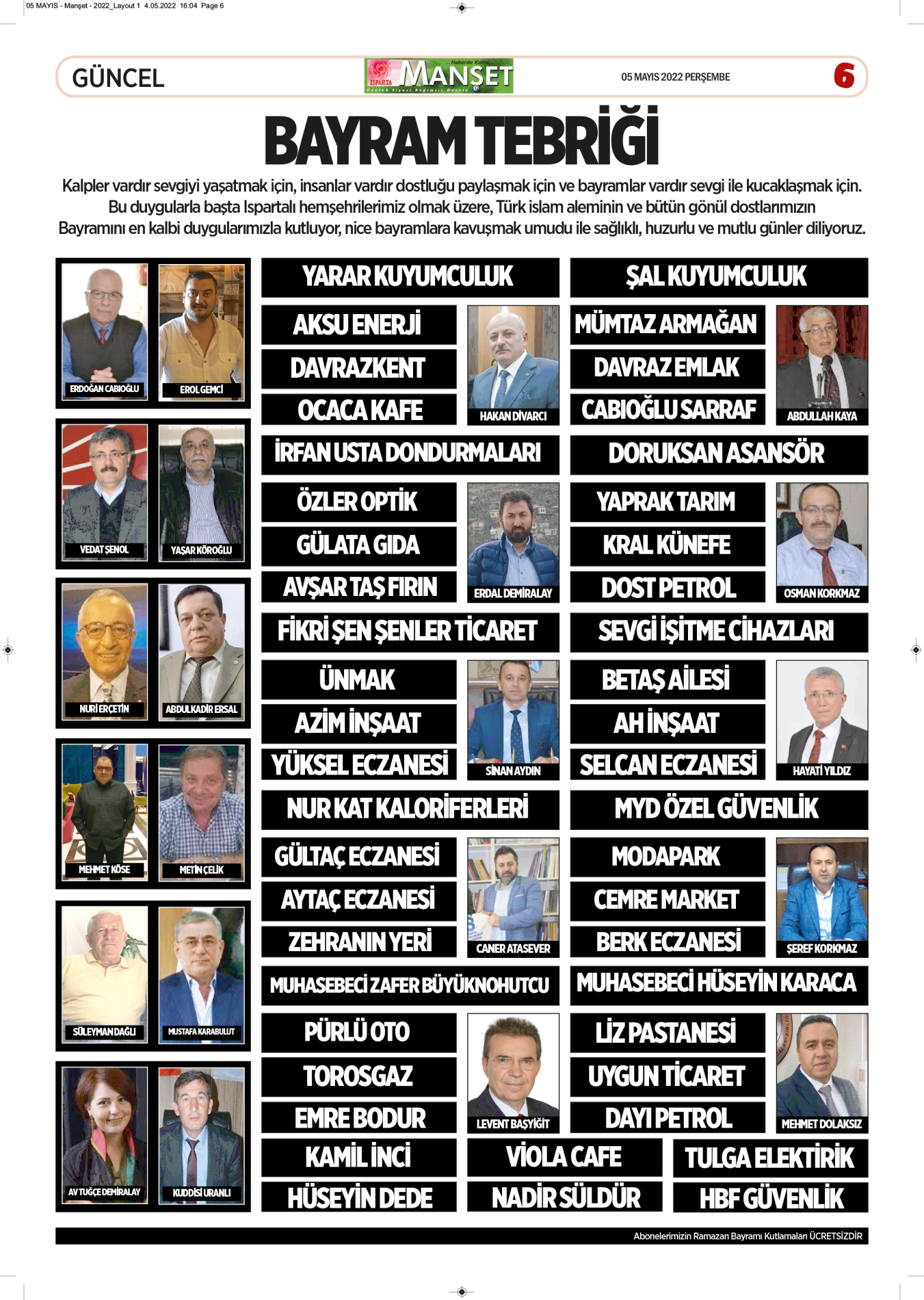 06 Mayıs 2022 Tarihli Gazetemiz