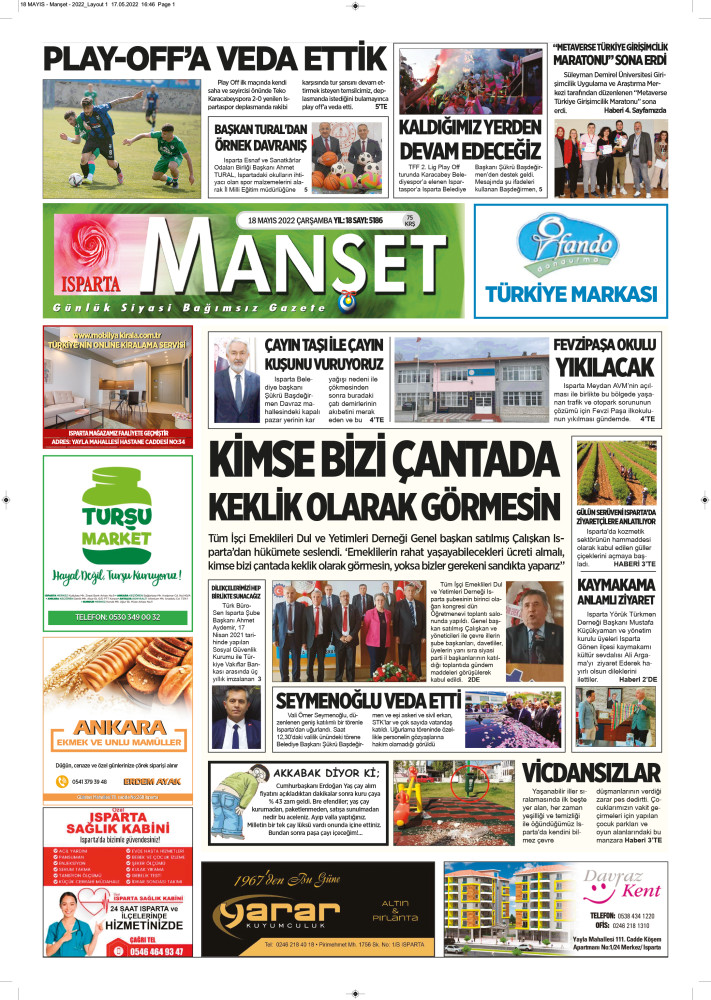 17 Mayıs 2022 Tarihli Manşet Gazeteniz