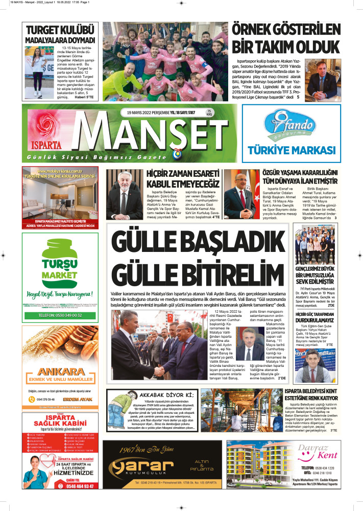 19 Mayıs 2022 Tarihli Manşet Gazeteniz