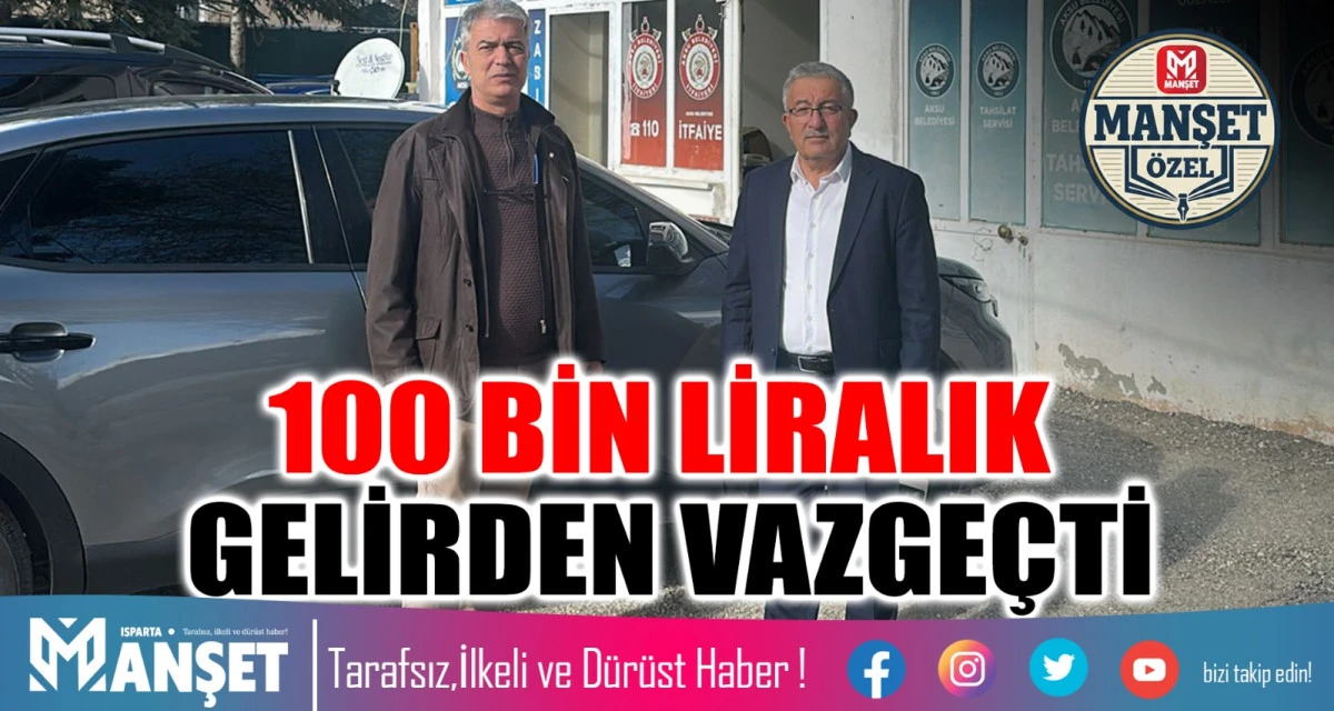 100 BİN LİRALIK GELİRDEN VAZGEÇTİ