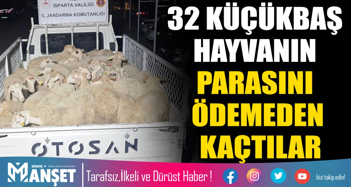 Isparta'da besiciden 32 küçükbaş hayvanı satın almak için anlaşan ve kamyona yükledikten sonra parasını ödemeden kaçan 2 şüpheli düzenlenen operasyonla yakalandı.