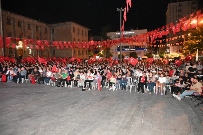 Meydanda oluşan kalabalık, Türkiye'nin başarılı oyununu alkışlarla desteklerken, maçın her dakikası büyük bir heyecanla izlendi.