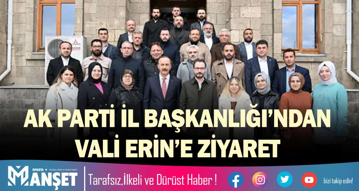AK Parti Isparta İl Başkanı Furkan Cem Er ve yönetim kurulu üyeleri, Isparta Valisi Abdullah Erin’i makamında ziyaret etti.