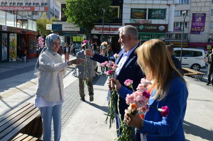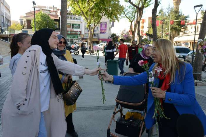 Ev ziyaretlerinin ardından Belediye Başkanı Şükrü Başdeğirmen ve eşi Şadiye Başdeğirmen, Kaymakkapı Meydanı’nda anne ve anne adaylarına karanfil dağıtarak, Anneler Gününü kutladı.