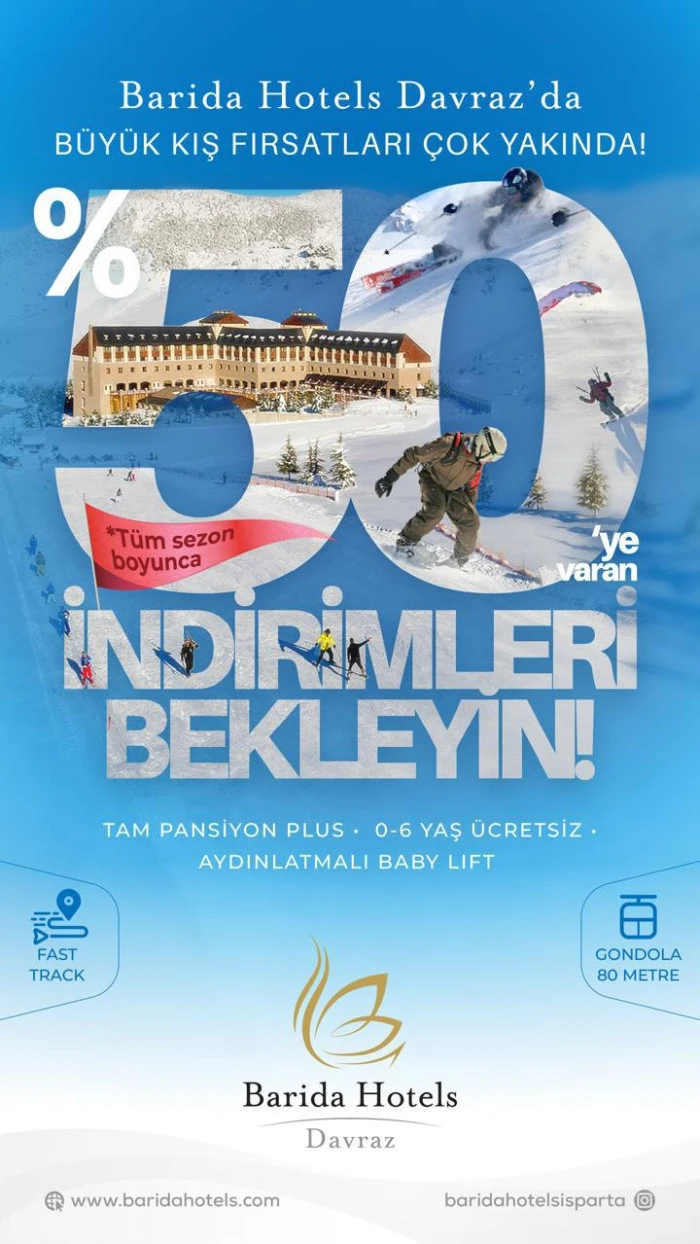 Kayak severleri yakından ilgilendiren bir diğer önemli gelişme ise ekonomik destek oldu. Barida Davraz yönetimi, erken sezona özel bir kampanya ile başlayacaklarını duyurdu: Sezonun ilk döneminde, tüm müşterilere yönelik %50 indirim uygulanacak. Bu büyük indirim, Davraz'ı bu yıl sadece yüksek kalitede pistleriyle değil, aynı zamanda cazip fiyat politikasıyla da kış tatili için en ulaşılabilir merkezlerden biri haline getiriyor.