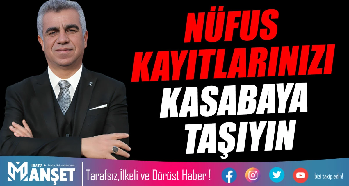 Bu nedenle, siz değerli hemşerilerimizden; gerek şahsen gerekse aile bireyleriniz aracılığıyla, nüfus kayıtlarınızı kasabamıza taşımanızı önemle rica ediyoruz.
