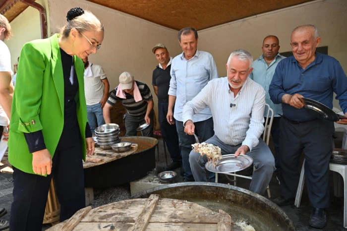 Duanın ardından aşure ve yemek kazanlarının başına geçen Başkan Başdeğirmen ve eşi Şadiye Başdeğirmen, etkinliğe katılan vatandaşlara aşure ve yemek ikramında bulundu, çocuklarla yakından ilgilendi, hatıra fotoğrafı çekildi.