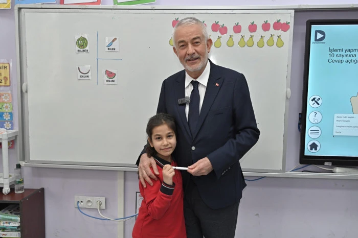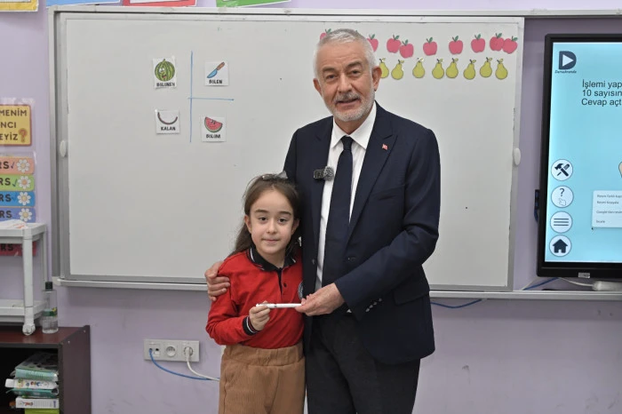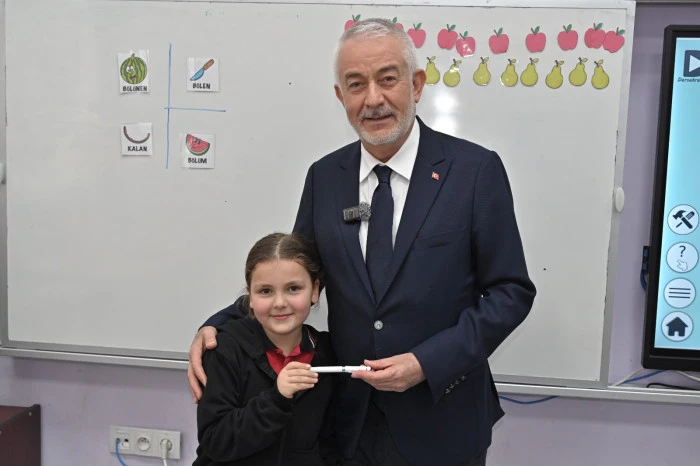İlk olarak minik öğrenciler tarafından çiçekle karşılanan Başkan Başdeğirmen, daha sonra okul yönetimiyle selamlaştı. Ardından 2-B sınıfı öğrencileri ile bir araya gelen Başkan Başdeğirmen, öğrencilerle sohbet etme fırsatı buldu ve yerel yönetimler ve belediyecilik konularında bilgiler verdi. Başkan Başdeğirmen minik öğrencilerin sorularını içtenlikle yanıtladı. Ardından Başkan Başdeğirmen, öğrencilere isimlerinin yazılı olduğu kalemleri hediye etti.