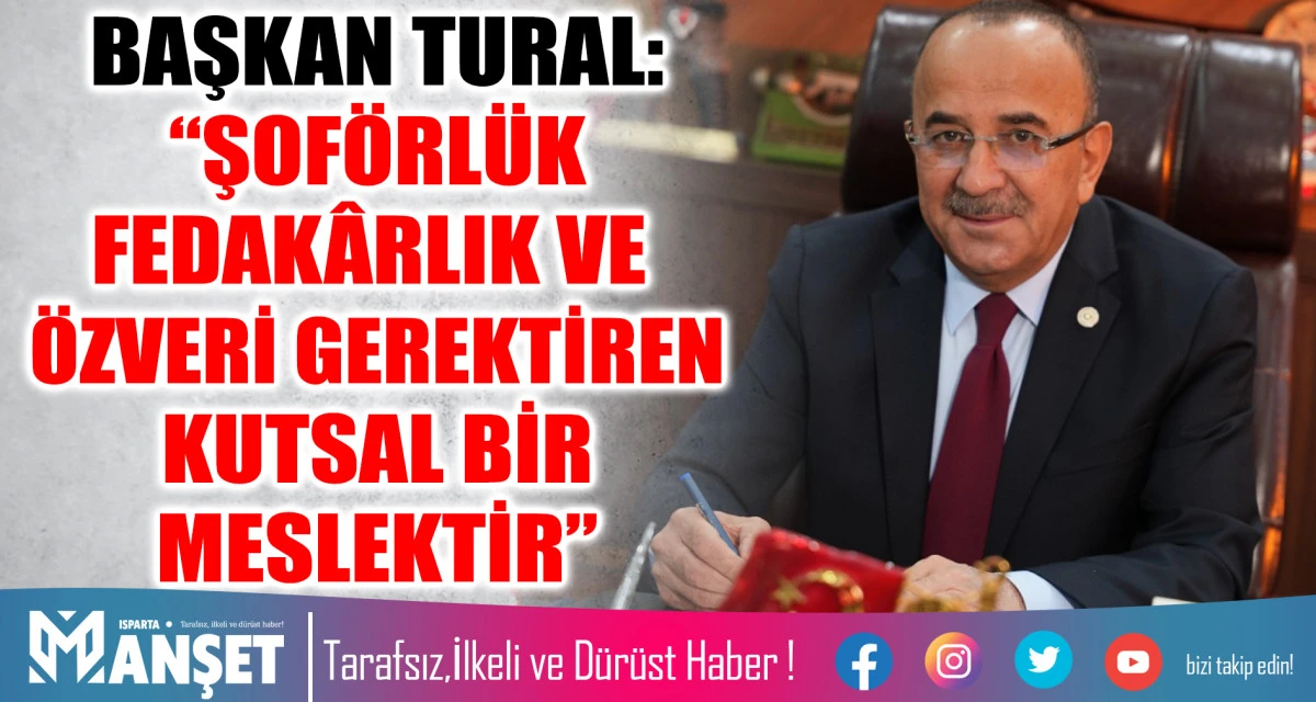Başkan Tural, 4 teker üzerinde rızıklarının peşinde olan, ailesi, çocukları ve yuvası kullandığı araçlar olan, gecesi gündüzü her türlü tehlikeyi göze alarak yollarda geçen, kazandığı her kuruşu anasının ak sütü gibi helal olan, çilekeş, vefakar, cefakar tüm tırcı, kamyoncu, otobüsçü, servisçi, minibüsçü ve taksici şoför esnafımızın, 30 Kasım Dünya Şoförler Günü’nü kutlar, kazasız, belasız, bereketli ve sağlıklı bir çalışma hayatı dilerim” dedi.