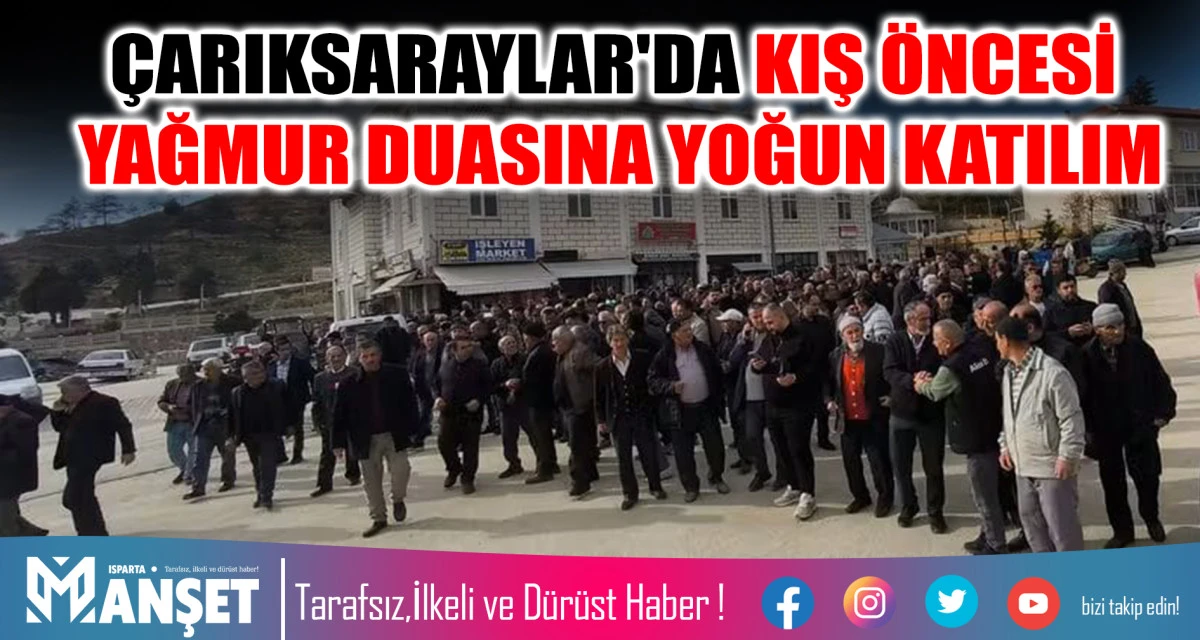 Isparta'nın Şarkikaraağaç ilçesine bağlı Çarıksaraylar Kasabası'nda, küresel ısınmaya bağlı kuraklık endişeleri gölgesinde bereketli yağışların gelmesi için geniş katılımlı bir yağmur duası programı düzenlendi. Tarım ve hayvancılıkla geçinen bölge halkının yoğun ilgi gösterdiği programa, siyaset ve bürokrasi dünyasından önemli isimler de eşlik etti.