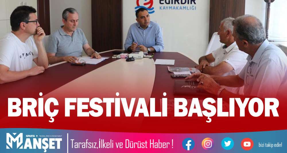 "7. Eğirdir Briç Festivali" koordinasyon toplantısı Kaymakam Adem Çelik Başkanlığında, Belediye Başkan Yardımcısı Erhan Savran, Gençlik ve Spor İlçe Müdürü Hakan Çelebioğlu, Federasyon hakemi skorizasyon sorumlusu Güray Serim ve Şener Sayı'nın katılımları ile gerçekleşti. 3 -6 Ağustos 2023 tarihleri arası yaklaşık 10-12 ilden 200 sporcusunun katılımları ile gerçekleşecek briç turnuvasının sponsorluğunu Eğirdir Belediyesi destekleyecek. 3 Ağustos günü Eğirdir Belediyesi sakin şehir kupası, 4 Ağustos günü Eğirdir Kaymakamlığı swiss takım kupası, 5 Ağustos günü Açık ikili 1. seans, 6 Ağustos günü Açık ikili 2. seans programı ile turnuvanın sonuçlanması planlanmıştır.