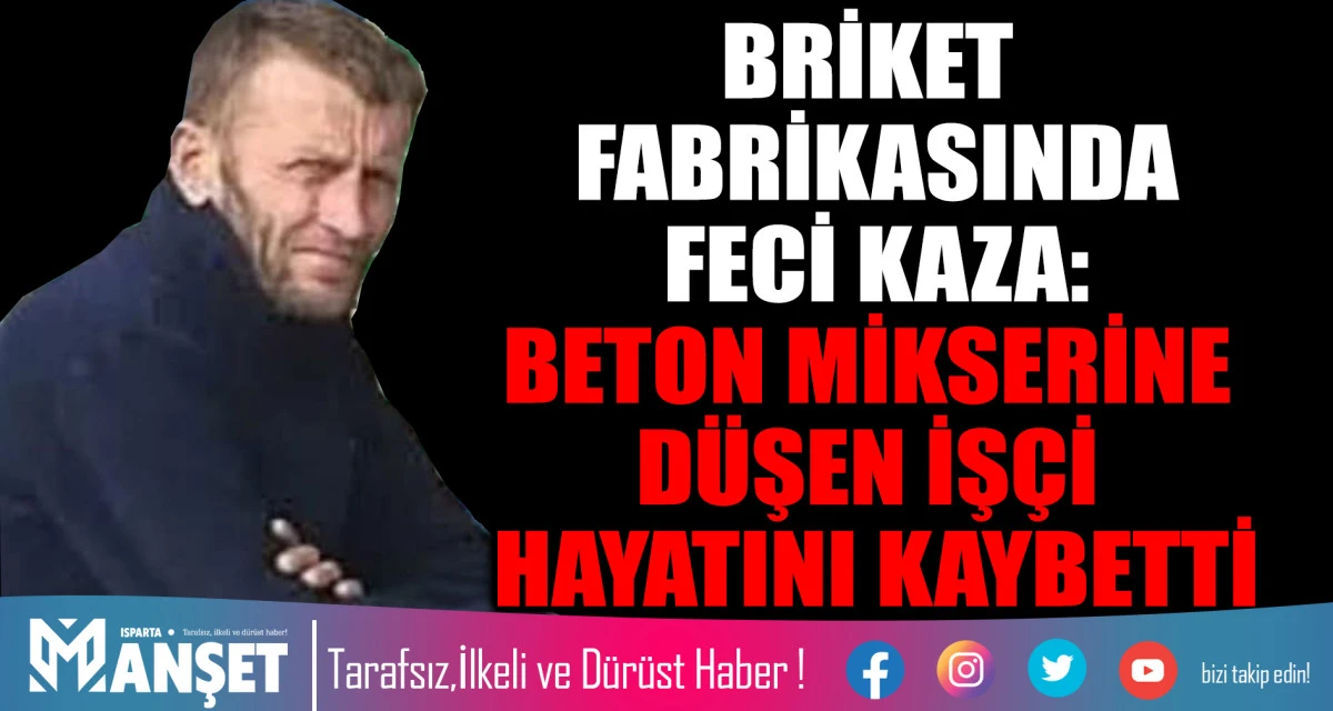Isparta’da bir briket fabrikasında meydana gelen iş kazasında 51 yaşındaki Bekir Aydınlı, beton mikserine düşerek hayatını kaybetti. Olay, Isparta-Eğirdir karayolu üzerindeki fabrikada yaşandı.