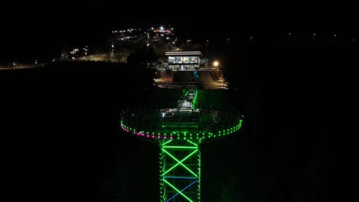 Isparta Belediyesi Kirazlıdere Sosyal Tesisleri önünde bulunan cam seyir terası, Yeşilay Haftası kapsamında bağımlılıkla mücadeleye dikkat çekmek amacıyla yeşil renkle ışıklandırıldı.