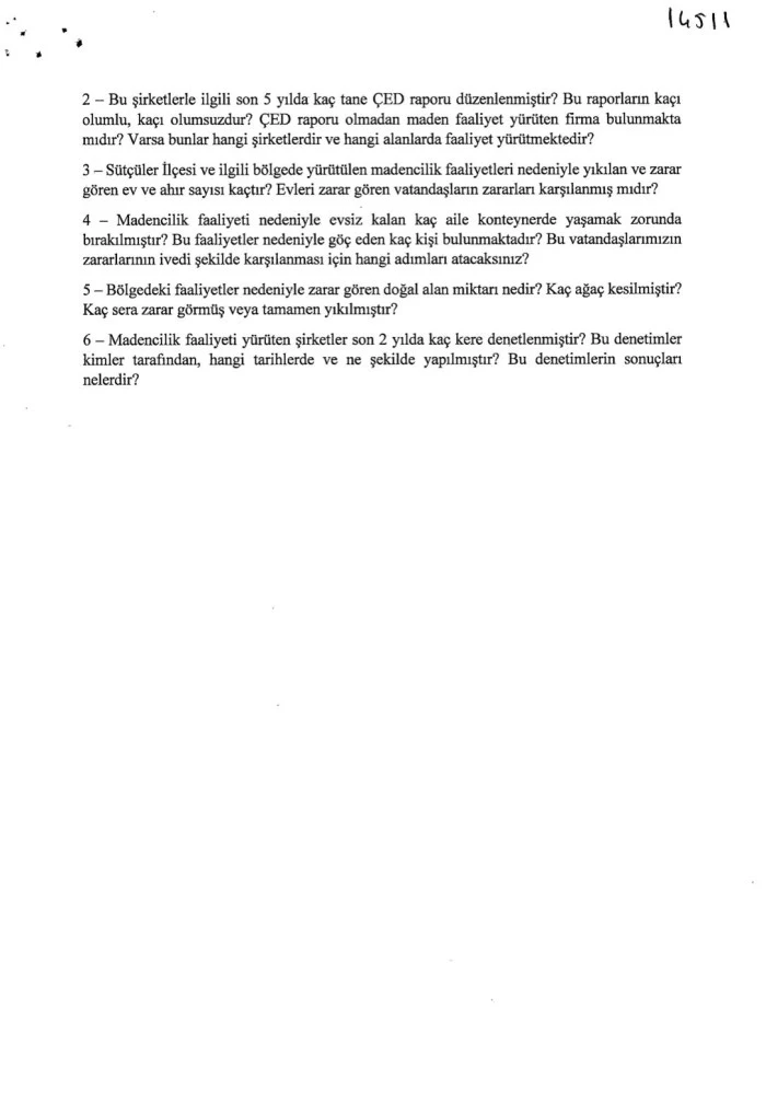 “SÜTÇÜLER’DEKİ MADEN FAALİYETLERİNİ 2 YIL ÖNCE TBMM’YE TAŞIDIK”