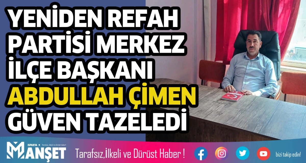 YENİDEN REFAH PARTİSİ ISPARTA MERKEZ İLÇE KONGRESİ YAPILDI.MEVCUT BAŞKAN ABDULLAH ÇİMEN GÜVEN TAZELEDİ