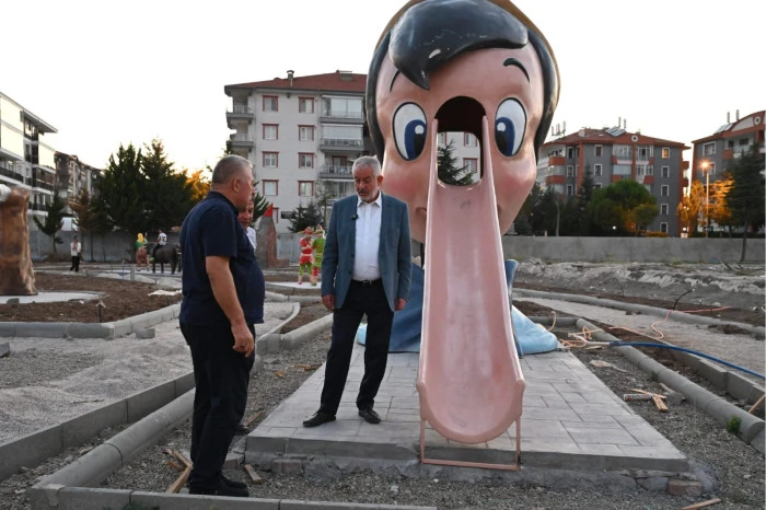 Tomurcuk Masal Park’ta devam eden çalışmalarda masal karakterlerinin figürlerinin montajı gerçekleştirildi. Belediye Başkanı Şükrü Başdeğirmen, çalışmaları yerinde inceleyerek, bilgi aldı. Başkan Başdeğirmen, bölgedeki çocuklarla da sohbet etti. Çocuklar, Tomurcuk Masal Parkı’nı çok beğendiklerini belirtirken, Başkan Başdeğirmen, parkla ilgili çocuklara bilgi verdi, görüşlerini aldı.