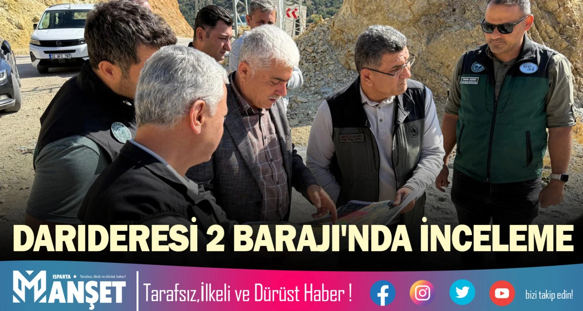 DSİ 18. Bölge Müdürü Osman Erkan ve Orman Bölge Müdürü Ali Özdemir, Isparta’da yapımı süren Darıderesi 2 Barajı’nda incelemelerde bulundu.