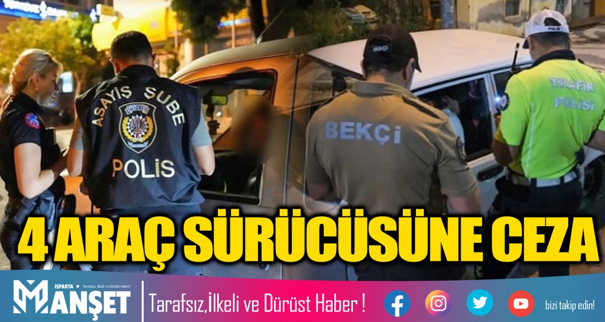 DENETİMLERDE 4 ARAÇ SÜRÜCÜSÜNE CEZA