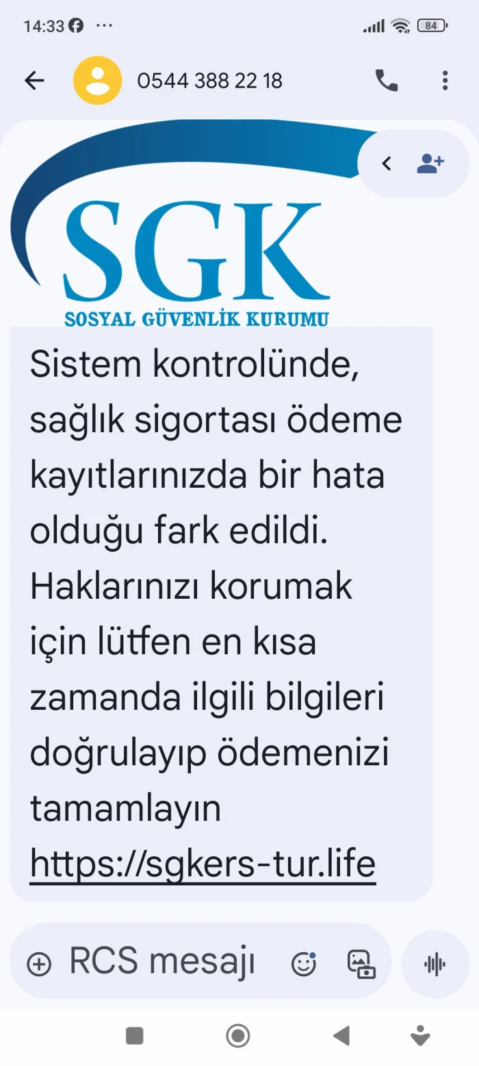 Vatandaşların cep telefonlarına gelen ‘Sistem kontrolünde, sağlık sigortası ödeme kayırlarınızda bir hata olduğu fark edildi. Haklarınızı korumak için lütfen en kısa zamanda ilgili bilgileri doğrulayıp ödemenizi tamamlayın’ mesajlarını dikkate almamaları gerektiğini belirten SSK Isparta il müdürü Bayram Balban, SSK’nın böyle bir mesajı olmadığını belirterek vatandaşları dolandırıcıların tuzağına düşmemeleri için uyardı.