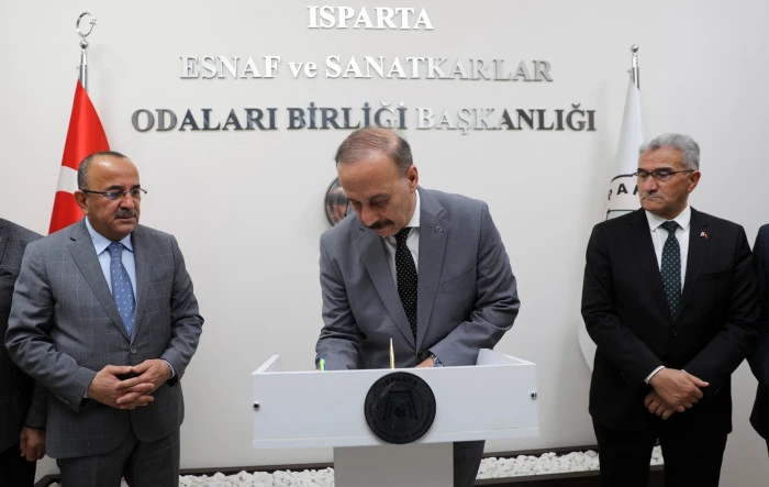 Vali Abdullah Erin de, esnaf ve sanatkârların beklentilerine hassasiyetle yaklaştıklarını belirterek, Bölge Birliği Başkanı Tural’a teşekkürlerini iletti. Vali Erin, “Ahmet başkanıma yönetimine ve bütün kadrosuna teşekkür ediyorum. Ahilik Haftasını kutluyoruz. Bu vesileyle bütün esnafımıza hayırlı bereketli bol işler temenni ediyorum. 1 seneye yakın zamandır Isparta’da görev yapıyorum bütün aktörlerle özellikle esnaf örgütlenmeleriyle iş birliği uyum içerisinde çalışıyoruz. Bu sürede esnafımızı dinlemeye çalışıyoruz. Ahmet başkanımızın ve arkadaşlarının bize ilettiği esnafımız ile ilgili konulara hassasiyetle yaklaşıyor ve çözme yolunda esnafımıza yardımcı olma yolunda elimizden geleni yapmaya çalışıyoruz. Ahilik Haftanızı tekrar tebrik ediyorum. Aslında çırak kalfa usta ilişkilerinin dünyadaki en güzel örneğini milletimiz 13. yüzyıldan itibaren bütün Dünyaya göstermiş. Ahiliğin temeli, insani ahlaki değerleri milletimizin özünü oluşturan temel değerleri esas alan ilkelere dayanıyor. Esnaf ilişkileri ticaret ilişkileri insanların birbirleriyle olan ilişkileri toplumsal ilişkileri ve diğer insanlarla olan ilişkileri de bütün insanların elinden dilinden emin olduğu dürüstlük üzerine kurulu ve karşılıklı yardımlaşmayı dayanışmayı konuşmayı esas alan bir teşkilatımız ve öğretimimiz var . Bu hafta boyunca bunu tekrar hatırlatmak gündeme getirmek farkındalık oluşturmak için çeşitli etkinlikler yapılıyor. Emeği geçen başta Ahmet Tural başkanım olmak üzere bütün ekibine çok teşekkür ediyorum.” diye konuştu.