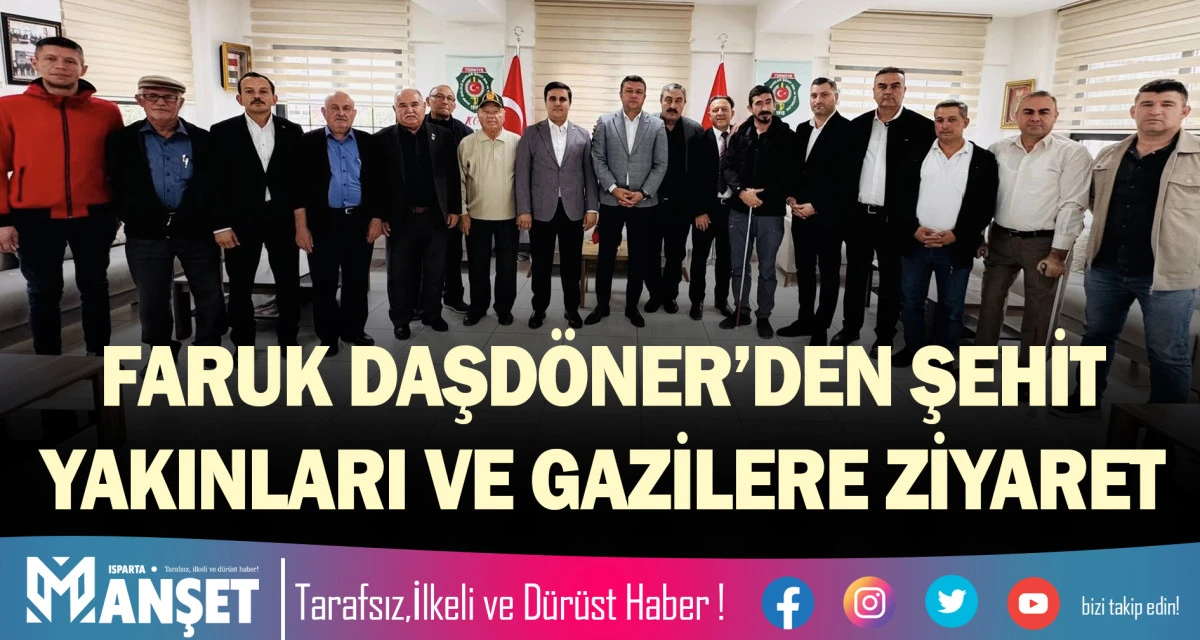 Türkiye Harp Malûlü Gaziler, Şehit Dul ve Yetimleri Derneği Isparta Şubesi, anlamlı bir ziyarete ev sahipliği yaptı. Isparta Halk Otobüsleri Kooperatifi Başkanı Faruk Daşdöner ve yönetim kurulu üyeleri, dernek başkanı Ali Savcı ve üyeleriyle bir araya geldi.