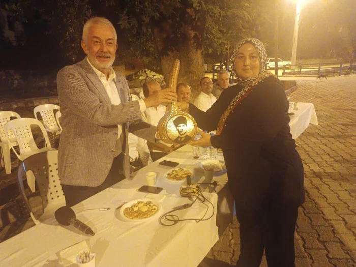 Su kabağından yaptığı Atatürk işlemeli Gece lambasını evinden getirerek başkana hediye etti.