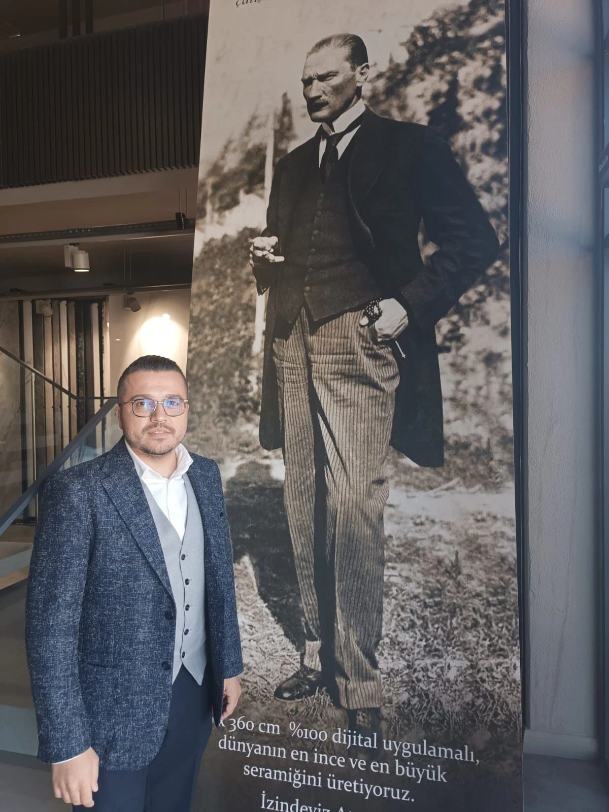"Bu Atatürk portreli seramiğimiz satılık değildir; mağazamıza özel bir değer katması için üretilmiştir. Ancak teknolojimiz sayesinde müşterilerimize aynı ebat ve kalitede, arzu ettikleri farklı renk ve desenlerde üretim yapabiliyoruz. Bu dev boyutlu ve ultra ince seramikler, günümüzde evlerin ve iş yerlerinin duvarlarını modern birer tablo gibi süslüyor."