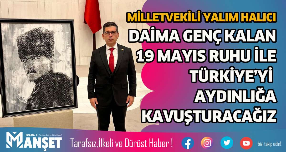 Parti Meclisi Üyesi ve CHP Isparta Milletvekili Hikmet Yalım Halıcı 19 Mayıs Atatürk'ü Anma, Gençlik ve Spor Bayramı vesilesiyle yazılı bir basın açıklaması yayınladı. Halıcı, açıklamasında “Mutlaka başaracak ve daima genç kalan 19 Mayıs ruhu ile Türkiye'yi aydınlığa ulaştıracağız.” dedi.