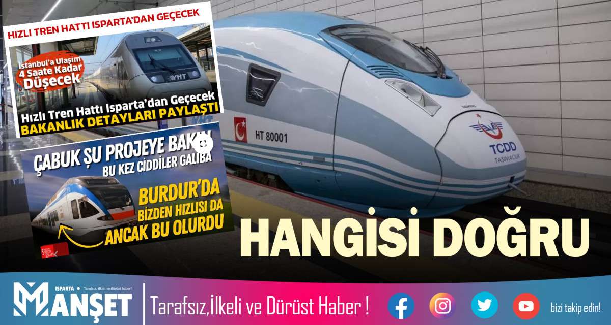 Isparta-Burdur rekabeti yıllara dayalı devam ediyor. Şimdi de hızlı tren projesi iki ili birbiri ile karşı karşıya getirecek gibi… İstanbul- Antalya hızlı tren projesinin etütlerinin tamamlandığını açıklayan Ulaştırma bakanlığının verdiği bilgiler doğrultusunda gelişmeleri haber yapan Isparta basını hızlı trenin Isparta’dan geçeceğini okuyucuları ile paylaşırken, Burdur basını da tam aksine projenin Burdur üzerinden Antalya’ya ulaşacağı yönünde haber yaptı. Her iki ili karşı karşıya getiren haberde hangisi doğru, hangisi gerçek takdir kamuoyunun.