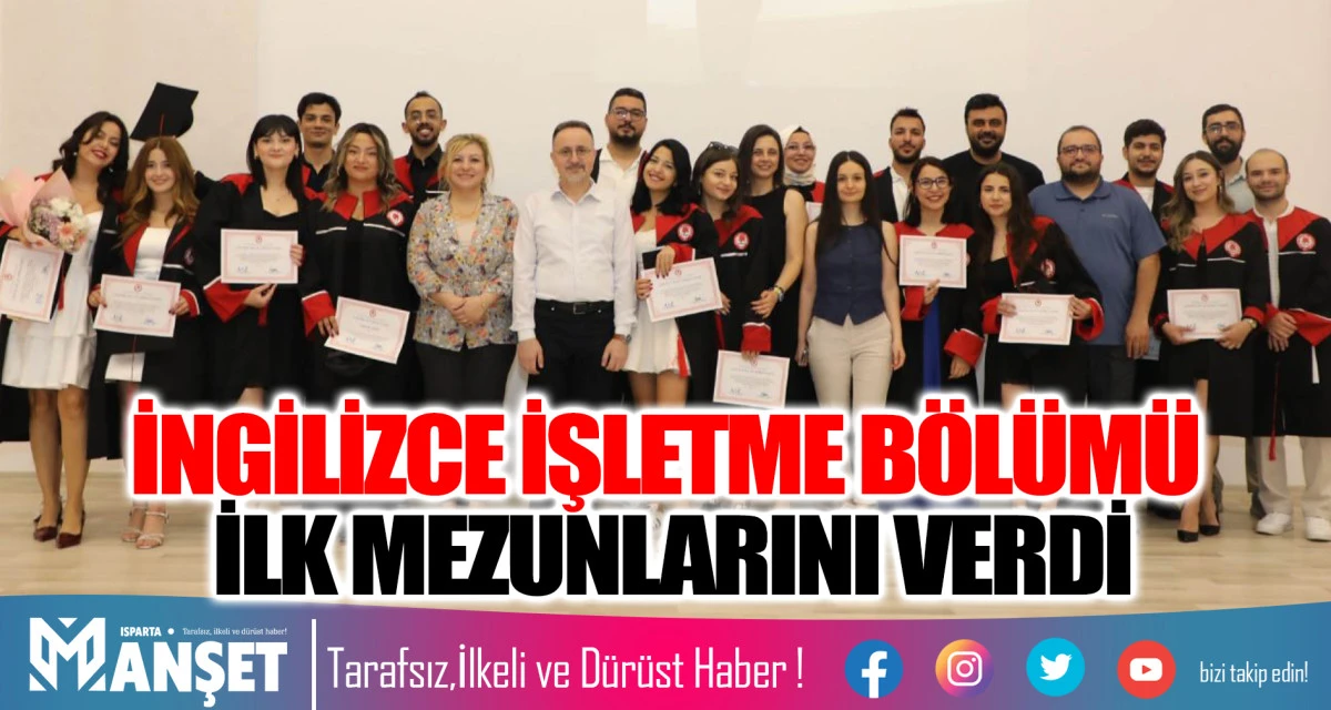 Süleyman Demirel Üniversitesi İktisadi ve İdari Bilimler Fakültesi bünyesinde 2020-2021 Akademik Yılında eğitim vermeye başlayan İngilizce İşletme Bölümü, ilk mezunlarını verdi. Fakültenin A Konferans Salonu’nda düzenlenen törene, İİBF Dekanı Prof. Dr. Mehmet Hakan Kiriş, İşletme Bölüm Başkanı Prof. Dr. Mustafa Zihni Tunca, akademisyenler, öğrenciler ve aileler katıldı.