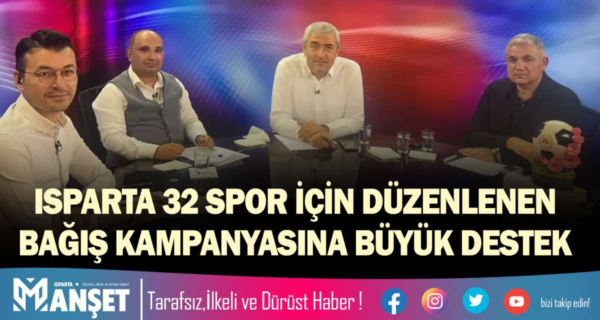 Türkiye 2. Futbol Ligi Beyaz Grupta mücadele eden Isparta 32 Spor için Kanal 32 ekranlarında düzenlenen bağış kampanyasına şehrin büyükleri ve sporseverleri canlı yayınla bağlanarak büyük destekte bulundular. Valilik izniyle yapılan bağış kampanyası yoğun ilgi gördü.