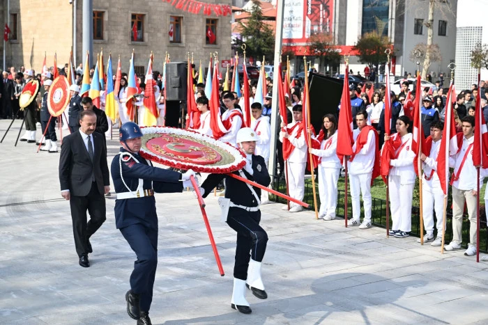 Protokolün yanı sıra vatandaşların da ilgi gösterdiği törende, Atatürk Anıtı’na sunulan çelenklerin ardından saygı duruşunda bulunuldu ve İstiklal Marşı okundu.