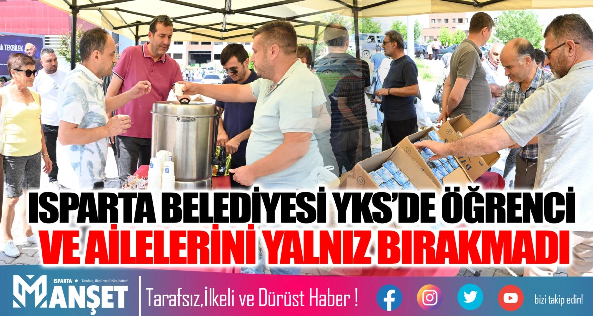Bugüne kadar eğitimin, öğrencilerin ve velilerin her zaman yanında olan Isparta Belediye Başkanı Şükrü Başdeğirmen’in talimatları doğrultusunda Isparta Belediyesi de YKS heyecanı yaşayan öğrenci ve ailelerinin yanındaydı. Belediye tarafından belirli sınav merkezlerinin önünde çadır kurularak öğrenci ve ailelerine su ve çay ikramında bulunuldu. İkramlar sınav süresi boyunca dağıtıldı. Isparta Belediyesi’nin ikramları YKS’nin 22 Haziran Pazar günkü oturumlarında da devam edecek.