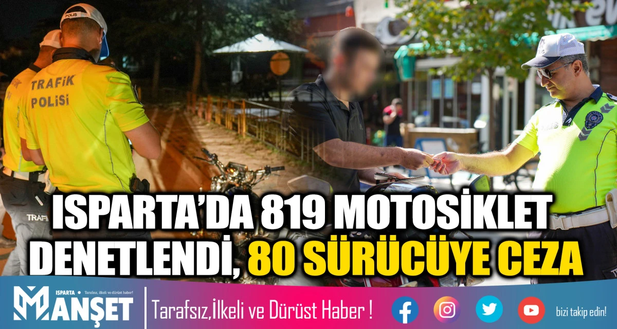 ISPARTA’DA 819 MOTOSİKLET DENETLENDİ, 80 SÜRÜCÜYE CEZA