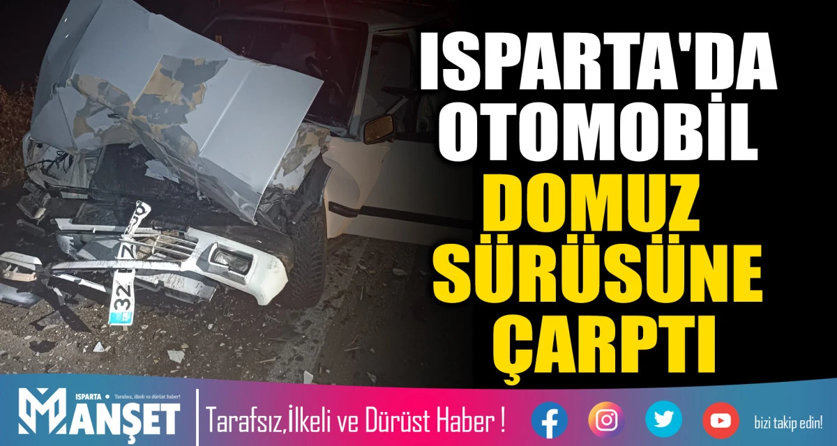 ISPARTA'DA OTOMOBİL DOMUZ SÜRÜSÜNE ÇARPTI