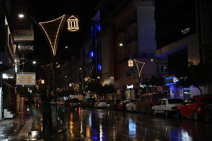 Belediye hizmet binasının yan tarafındaki kaldırıma ışıklı kandil yerleştirilirken, bina önündeki otoparkın üst kısmına hilal ve cami silüetleri konularak ışıklandırıldı. Eski çarşı polis karakolunun karşısındaki noktaya ise “Hayırlı Ramazanlar” yazılı mahya ile cami silueti yerleştirildi.