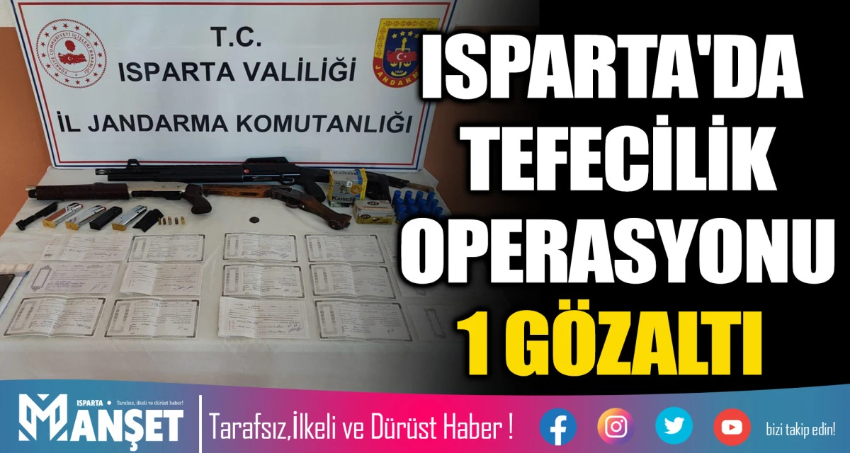 Isparta'da düzenlenen tefecilik operasyonunda 1 şüpheli gözaltına alındı.