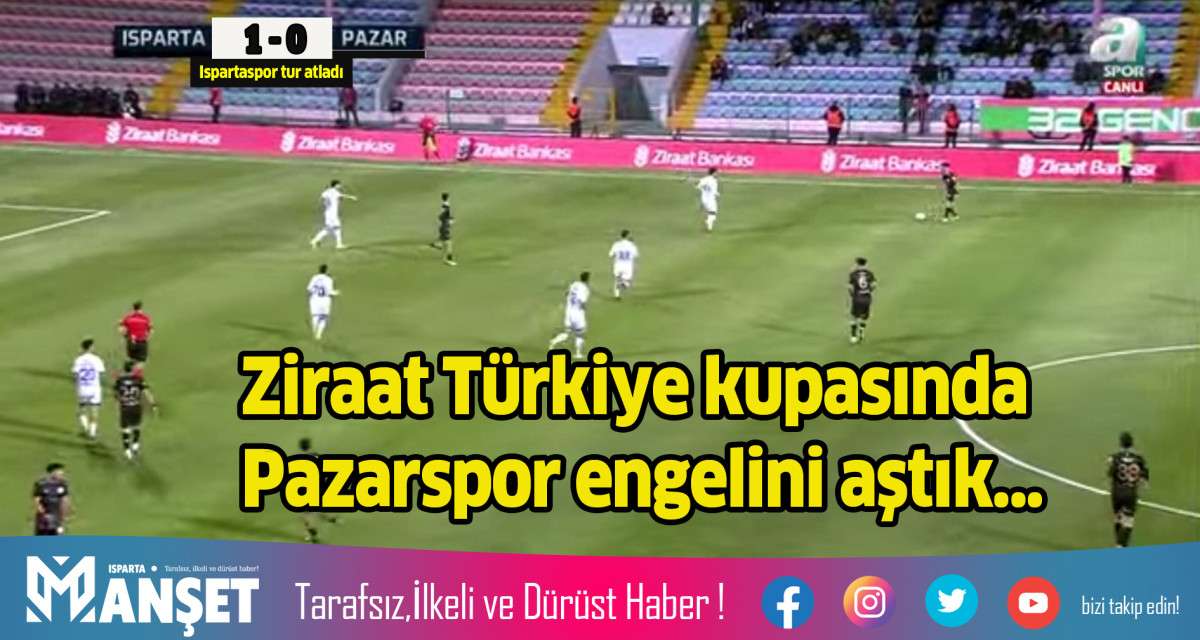 Ziraat Türkiye kupası üçüncü tur maçları bütün hızı ile devam ediyor. temsilcimiz E koleji Isparttasporun 3.ncü turdan katıldığı elemelerde ilk rakibi Rize temsilcisi Pazarspor oldu. Atatürk stadında oynanan mücadelede yedek oyuncular ile sahada mücadele eden temsilcimizde Muhlis,Kubilay gibi oyuncuların son dakikalarda oyuna dahil olması ile temsilcimiz aradığı gole Muhlisn attığı gol ile ulaştı. Uzatmada attığımız gol ile rakibimiz Pazarsporu kupa dışına iten Pembe yeşilli ekip 4.ncü turda karşılaşacağı rakibini bekleyecek.