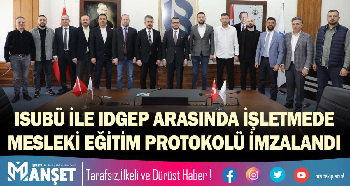Isparta Uygulamalı Bilimler Üniversitesi (ISUBÜ) ile Isparta Değişim ve Gelişim Platformu (IDGEP) arasında, İşletmede Mesleki Eğitim Protokolü imzalandı. Protokole IDGEP adına Platform Başkanı Nazmi Esen, ISUBÜ adına Rektör Prof. Dr. Yılmaz Çatal imza attı. Rektör Prof. Dr. Çatal, Üniversitenin gelişim ve değişimine yönelik bilgiler aktardı. 70 üyesi olan platformun Başkanı Nazmi Esen, ara eleman olarak istihdam edilecek öğrencileri daimi olarak da çalıştırmayı planladıklarını belirterek, her konuda ISUBÜ ile paydaş olmaya hazır olduklarını belirtti.