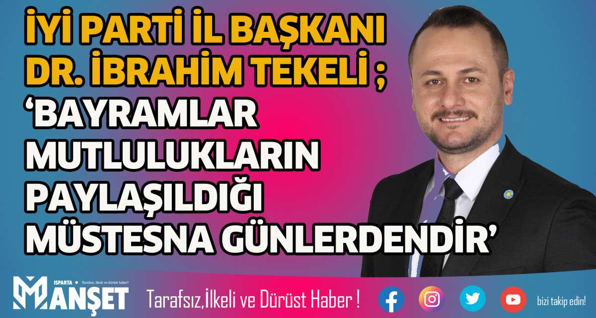 İyi Parti İl Başkanı Dr. İbrahim Tekeli, Ramazan Bayramı dolayısıyla yayımladığı mesajında, büyük bir manevi huzurla idrak ettiğimiz Ramazan ayının ardından, mübarek bayram günlerine ulaşmanın mutluluğunu yaşadıklarını ifade ederken, diğer yandan bayramın 2. günü İl Başkanlığında düzenlenecek bayramlaşma programına davette bulundu.