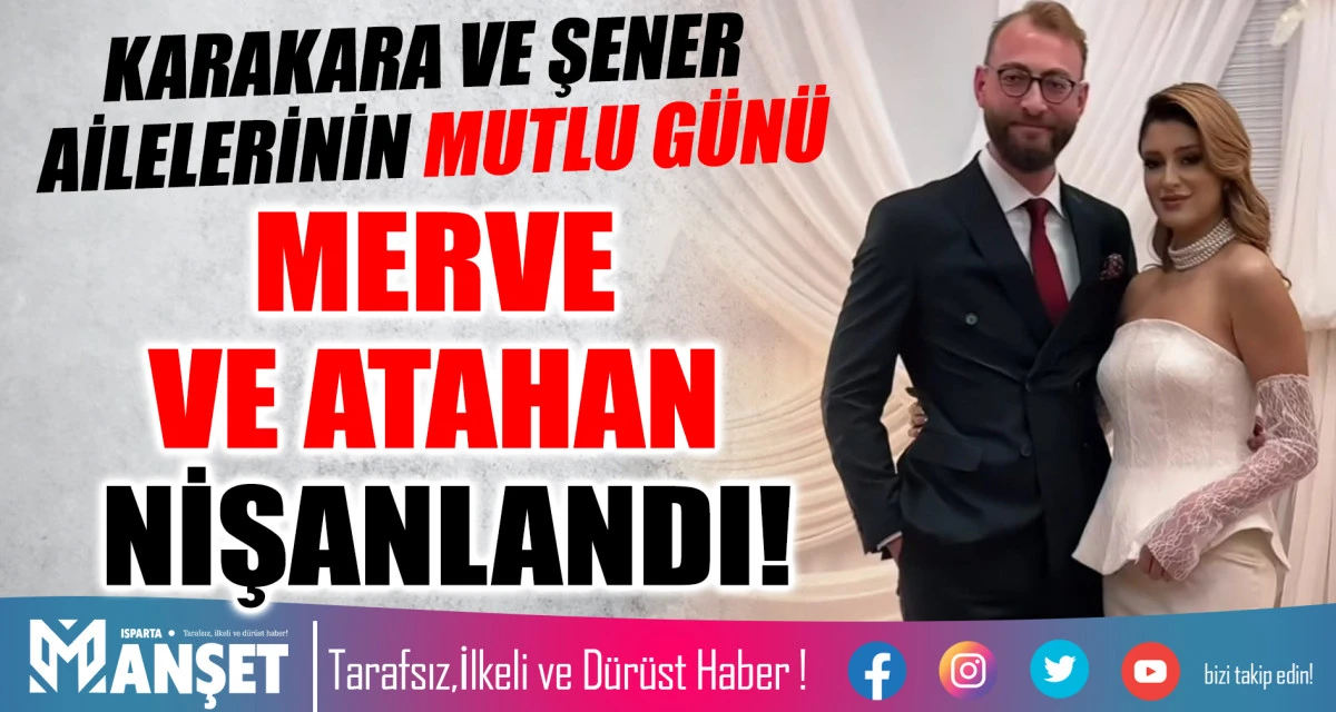 Isparta iş ve sosyal hayatının tanınan ailelerinden KARAKARA ve ŞENER aileleri, evlatları Merve ve Atahan'ın nişan töreniyle büyük bir sevinç yaşadı. Merve ve Atahan çifti, birlikteliklerini evlilik yolunda taçlandırmak üzere ilk adımı atarak nişan yüzüklerini taktı.